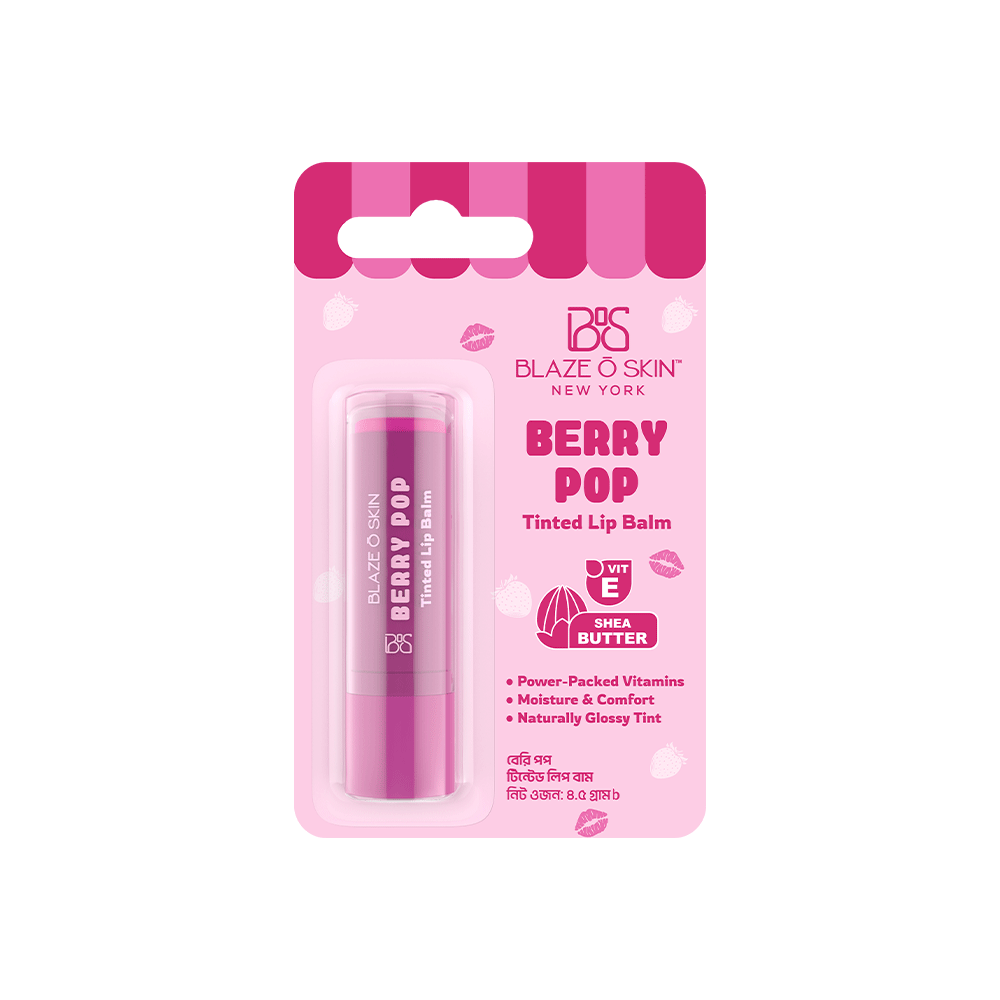| Pop your lips with a burst of juicy color and care with Blaze O’ Skin’s Berry Pop Tinted Lip Balm. Revel in a naturally tinted, glossy finish with a delightful berry flavor that’s as refreshing as it is nourishing. This lightweight, non-sticky formula, infused with Vitamins E, keeps your lips soft, smooth, and beautifully vibrant. |