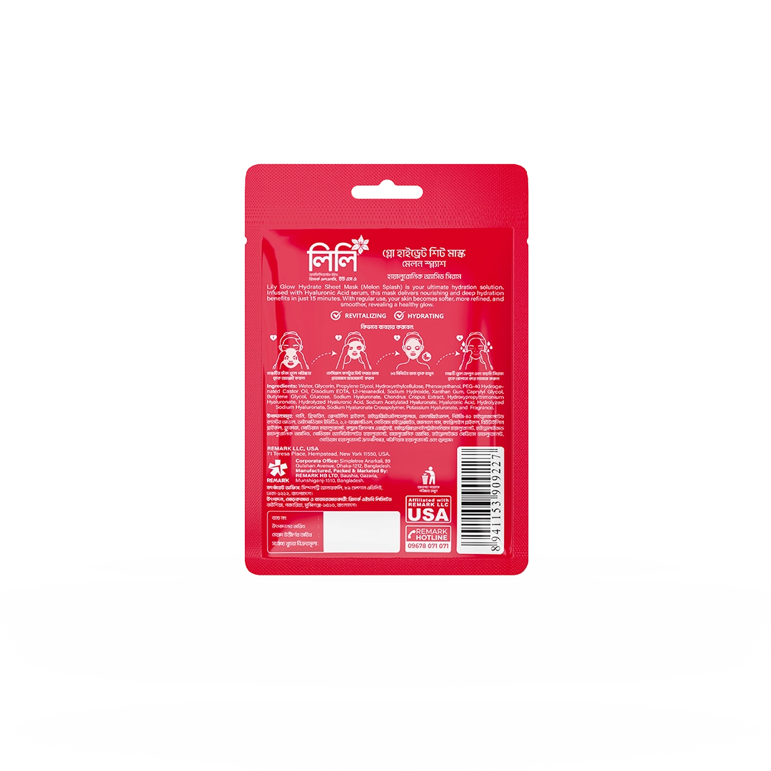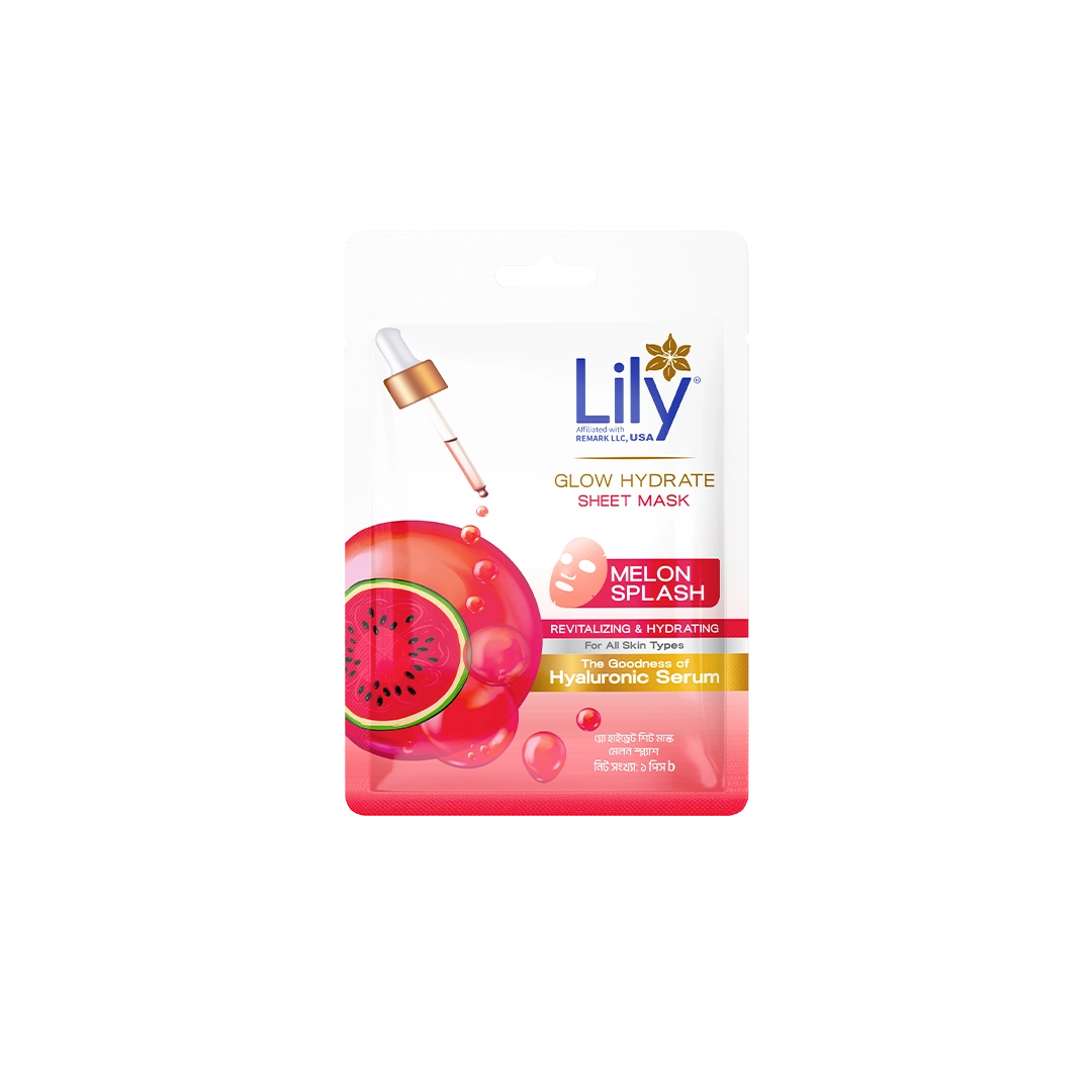 Lily Glow Hydrate Sheet Mask (Melon Splash) is your ultimate hydration solution. Infused with Hyaluronic Acid serum, this mask offers nourishing benefits in just 15 minutes – deep hydration and soothing skin.