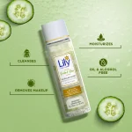 Lily Radiant Rinse Micellar Water Refreshing Cucumber delicately cleanses, effortlessly removes makeup, impurities, and pollution, while moisturizing and revitalizing sensitive skin, including the face, eyes, and lips, without leaving any residue behind.