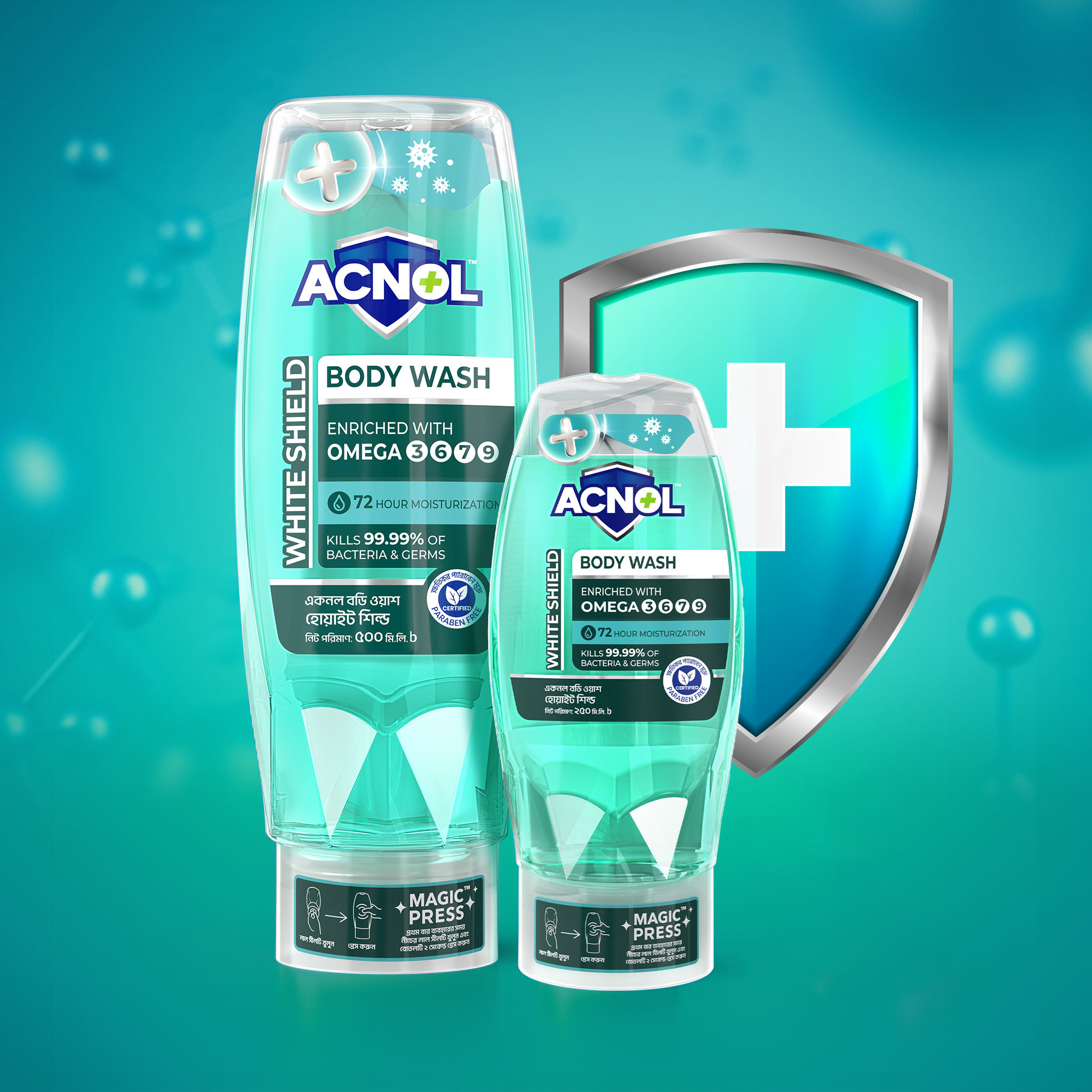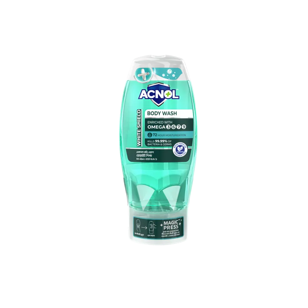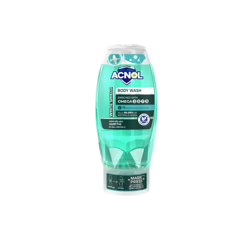 Acnol Multifunctional Hygiene Body Wash – White Shield offers the ultimate cleansing experience with advanced protection, leaving your skin feeling refreshed and nourished. Enriched with Omega Plus, this body wash provides essential moisture and shields your skin from harmful bacteria, delivering 360-degree protection. Ideal for daily use, its pH-balanced formula ensures optimal care for your skin while a refreshing fragrance enhances your shower experience.