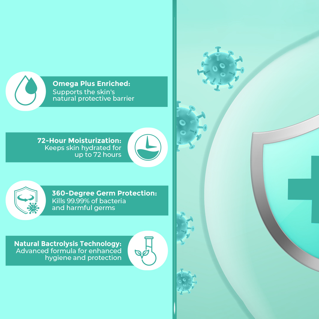 - Natural Bactrolysis Technology: Advanced formula for enhanced hygiene and protection