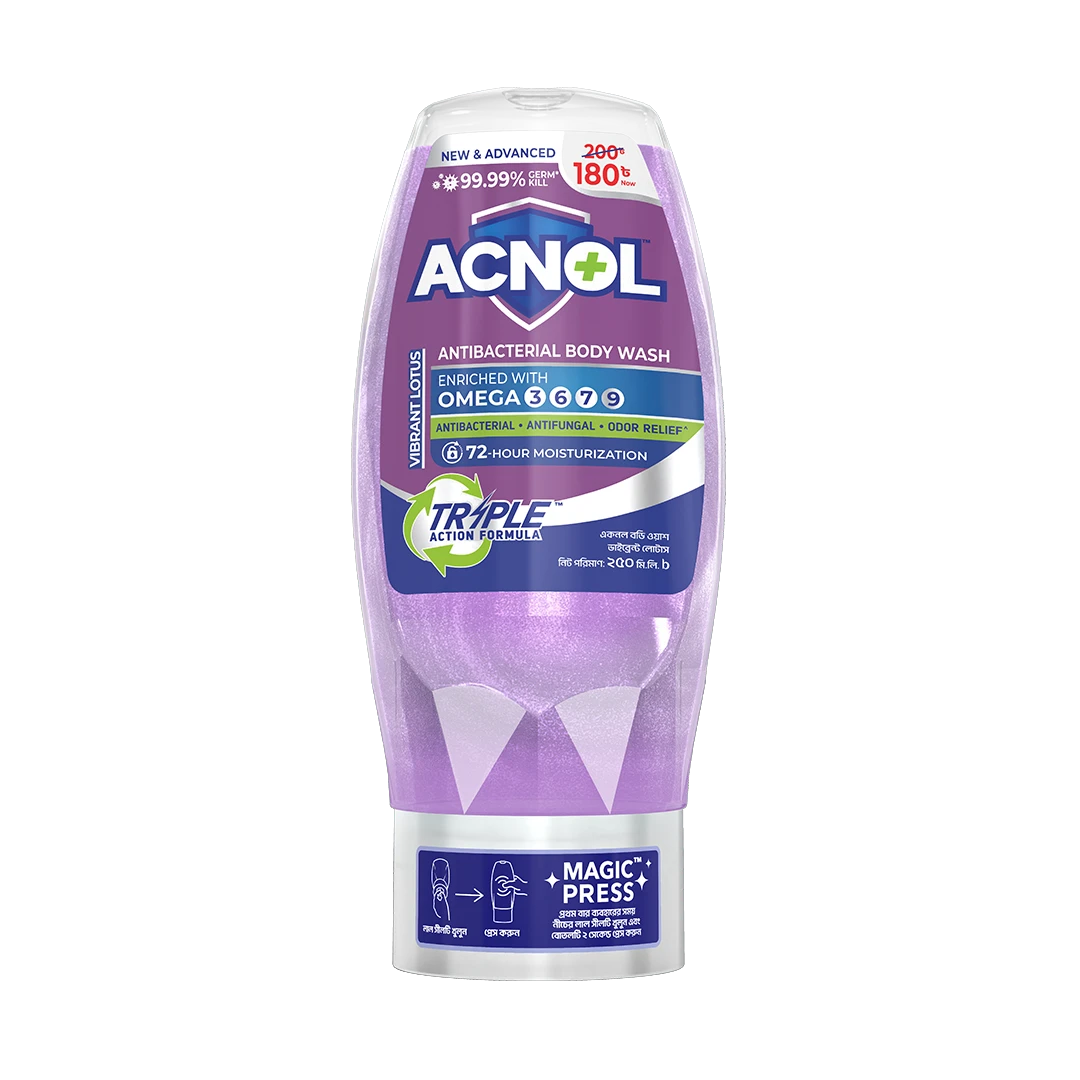 ACNOL is the go-to solution for daily hygiene having different variants of bodywashes. Its new & advanced formulation with Triple Acion Formula is synthesized to provide the ultimate protection for the entire family while keeping germs away.