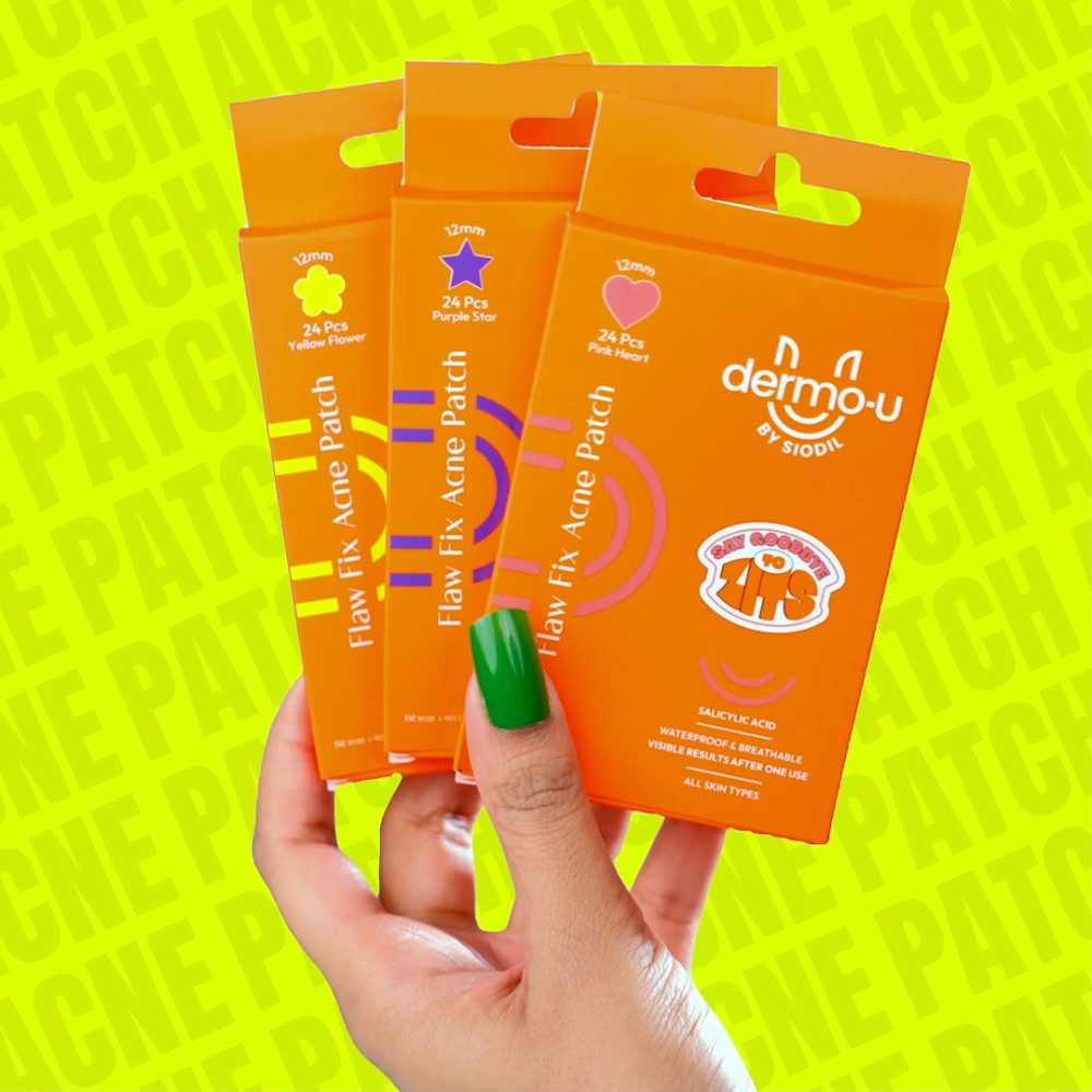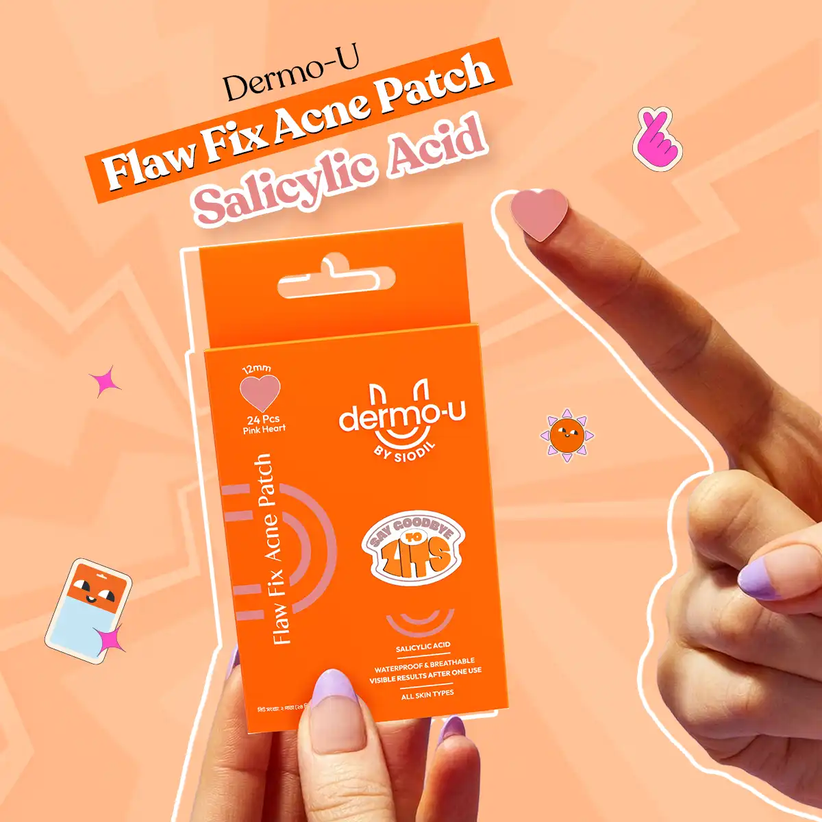 Dermo-U Flaw Fix Acne Patch Salicylic Acid is crafted from vegan hydrocolloid fiber to absorb pus, flatten pimples, and protect them from external pollutants. Enriched with salicylic acid, it unclogs pores and reduces inflammation, giving clearer skin with visible results after just one use. Waterproof, breathable, and gentle for all skin types, it can be worn day and night.