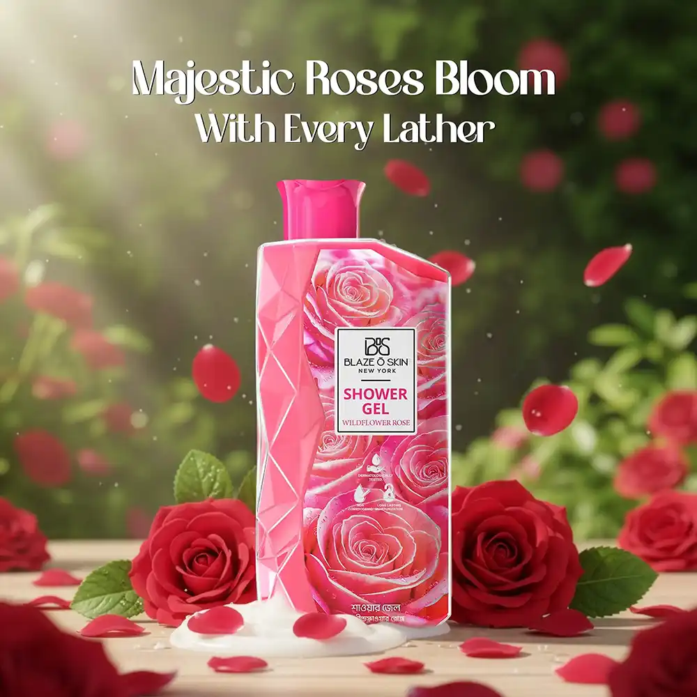 Embrace the serenity of Blaze O’ Skin Wild Flower Rose Shower Gel as it delicately cleanses your skin, leaving it impeccably refreshed. Enriched with nourishing shea butter, this exquisite shower gel envelops your skin in a soothing, hydrating veil, transforming it into a silky-smooth canvas. Indulge in the bliss of skin that’s pampered with lasting hydration, graced by the enchanting, lingering fragrance of majestic roses.