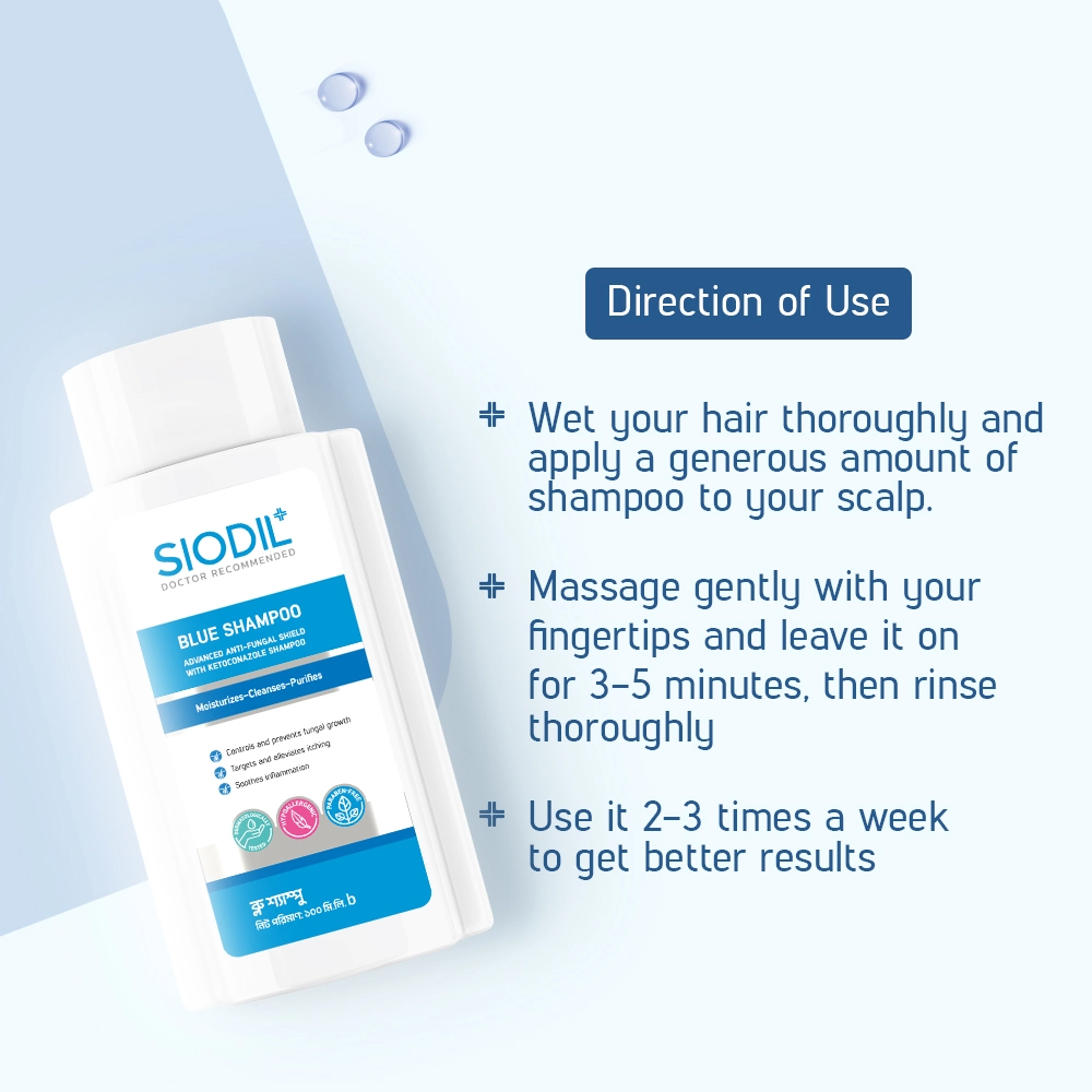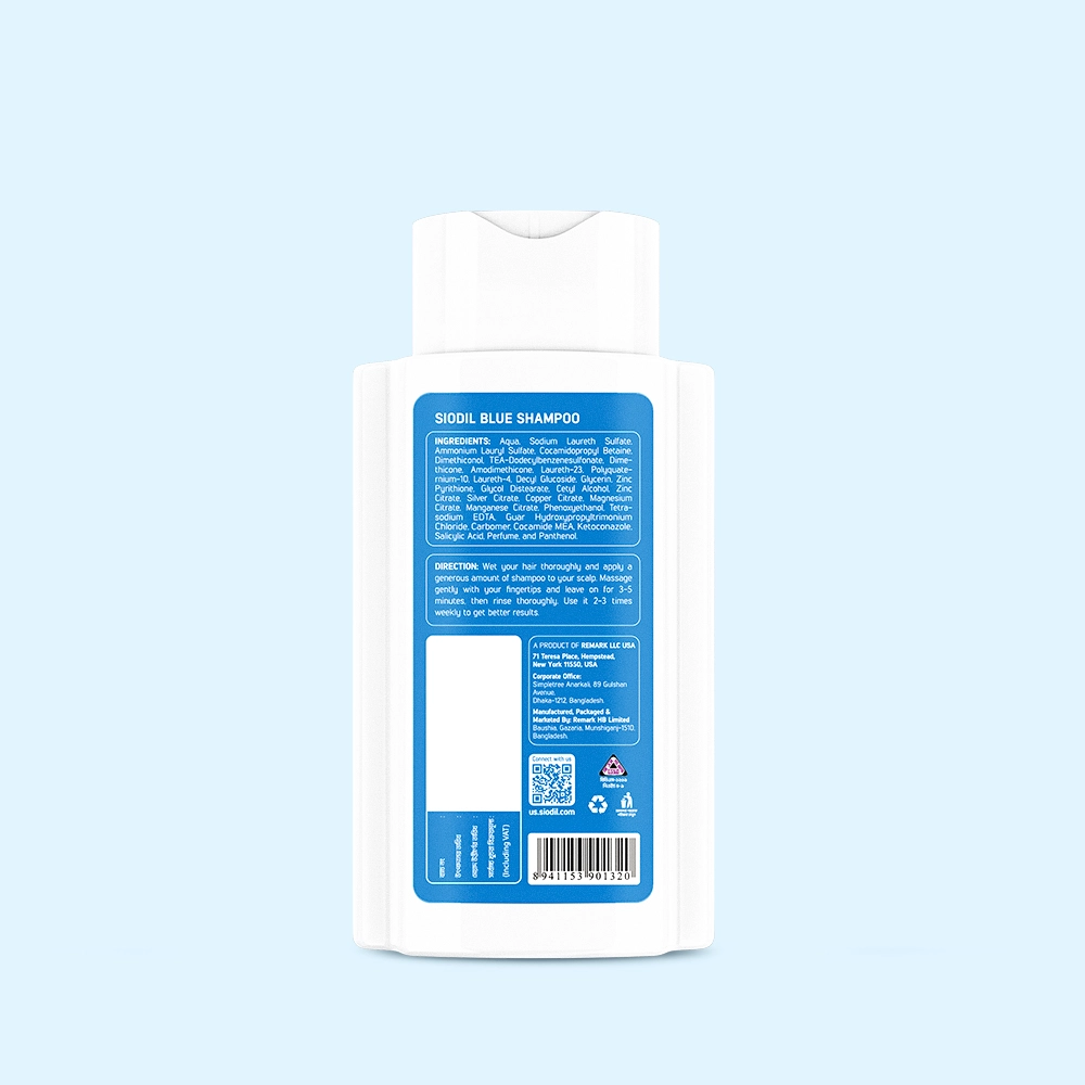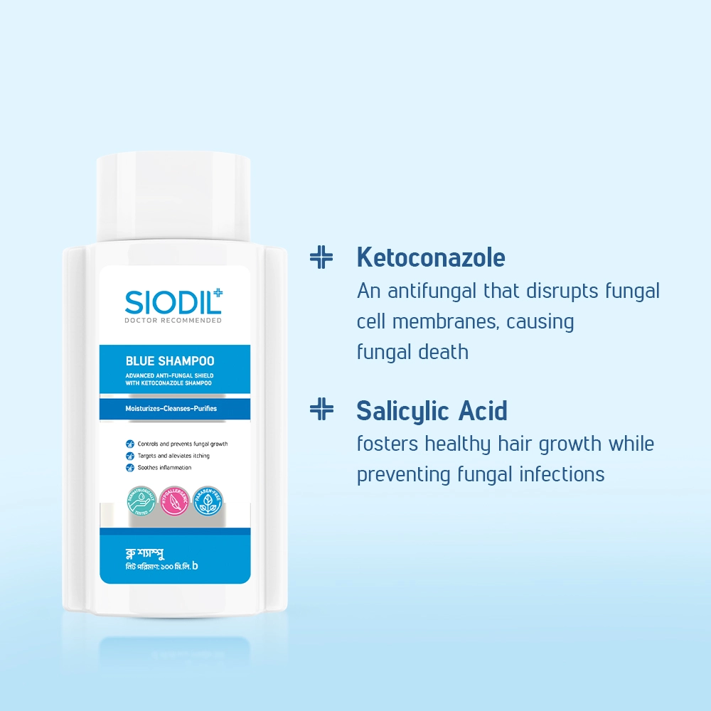 Siodil Blue Shampoo, with its innovative mix of Ketoconazole and Salicylic Acid, is specifically intended to treat and prevent fungal infections of the scalp, such as seborrheic dermatitis. The shampoo reduces the symptoms of these conditions by targeting the fungus responsible for their development.