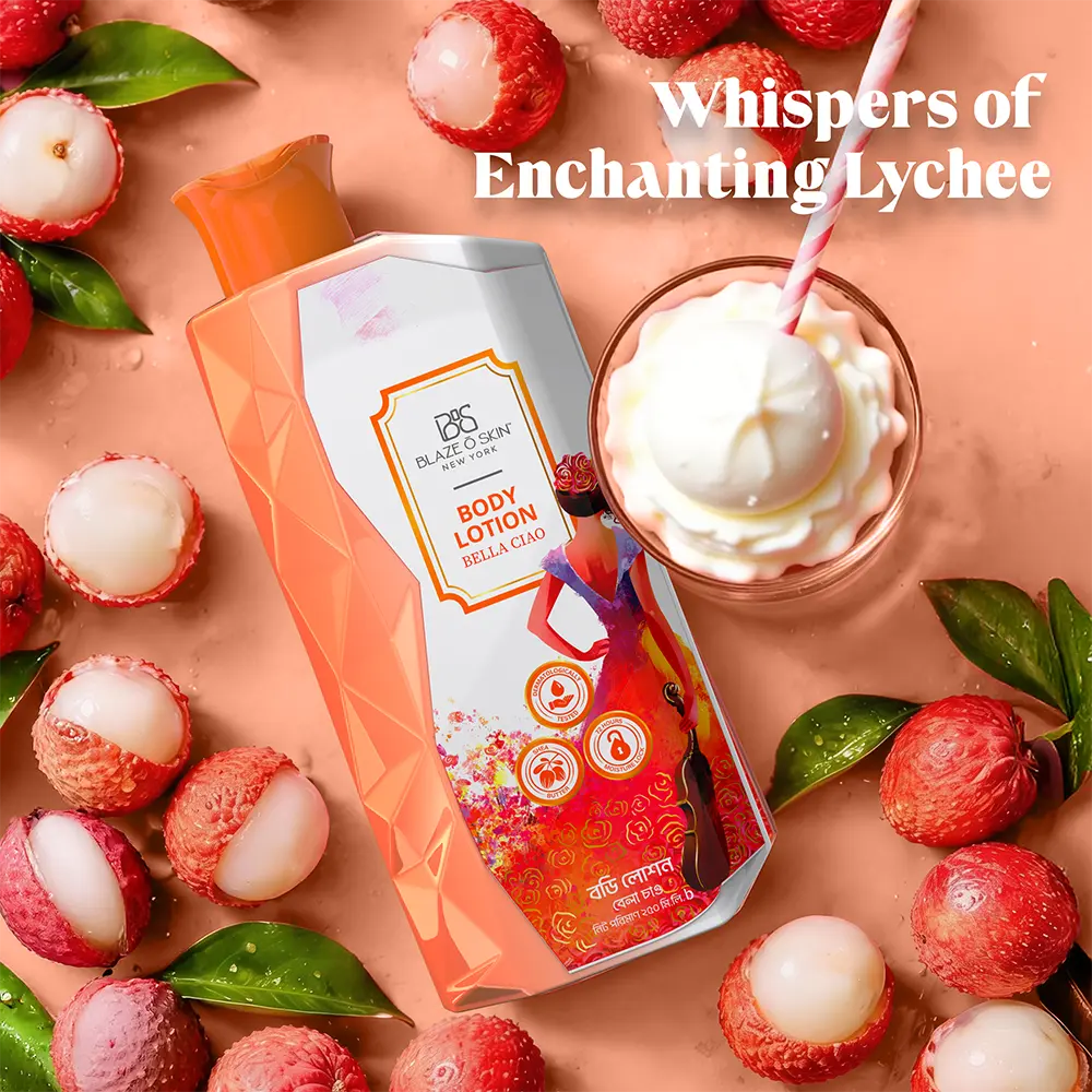 Indulge in the heavenly embrace of Blaze O’ Skin’s “Bella Ciao” Body Lotion! Let the tantalizing essence of lychee intertwine with a fountain of moisture, creating a symphony for your skin that lasts an incredible 72 hours. It bonds gracefully to safeguard the integrity of the skin barrier and speed up the process of healing superficial wounds and irritations.