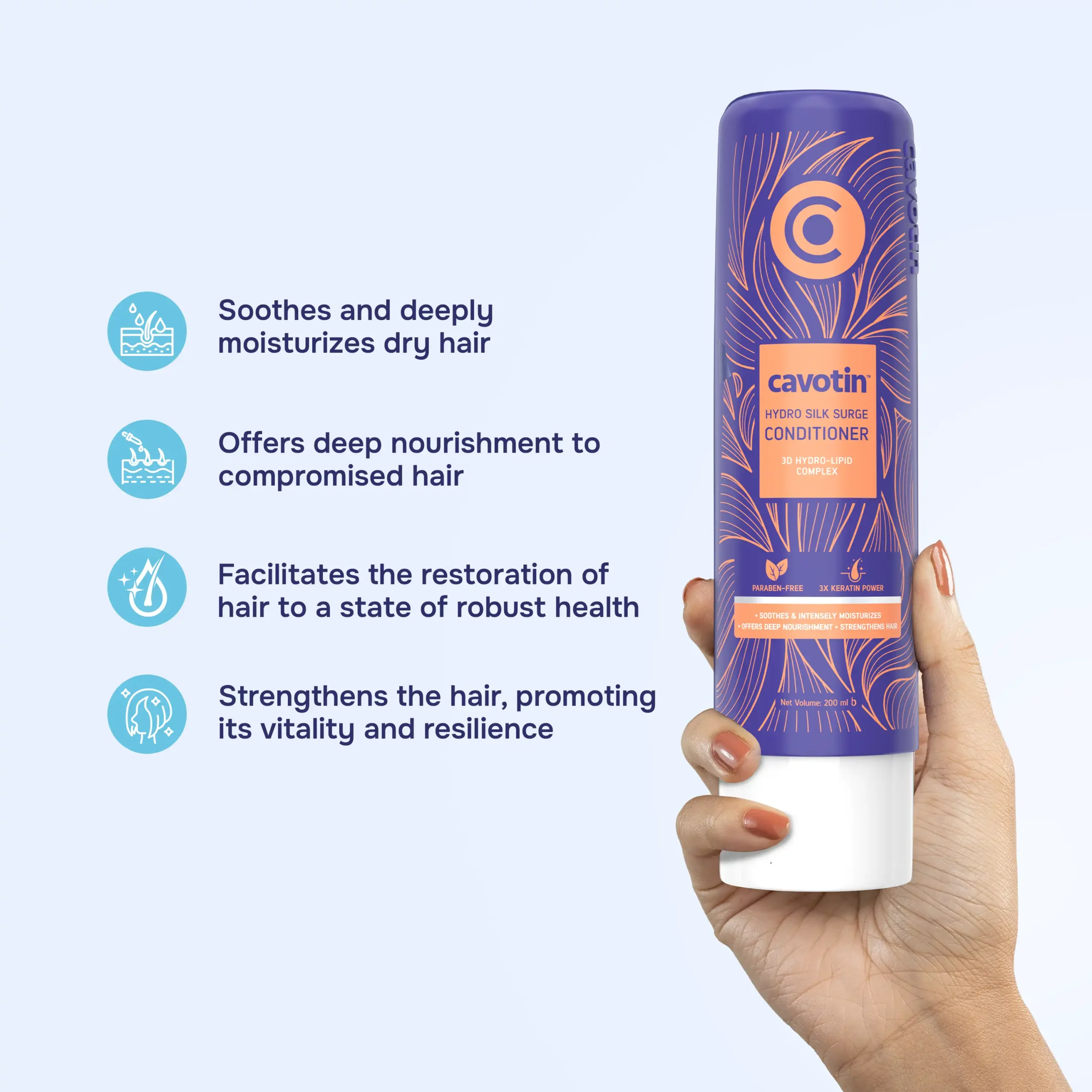 - ?After shampooing, generously apply Cavotin Hydro Silk Surge Conditioner to your hair