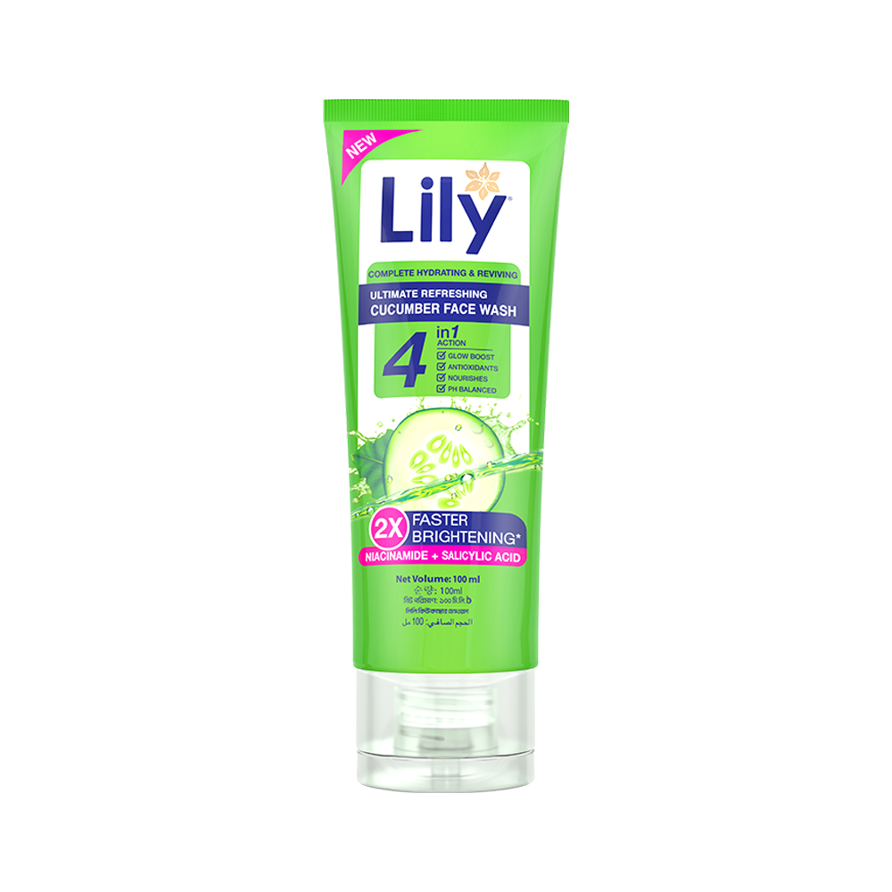 Lily Cucumber Facewash gently cleanses and refreshes your skin with the natural benefits of cucumber. Its soothing gel formula hydrates and revitalizes sensitive skin, promoting an even skin tone and a naturally radiant complexion with every wash.