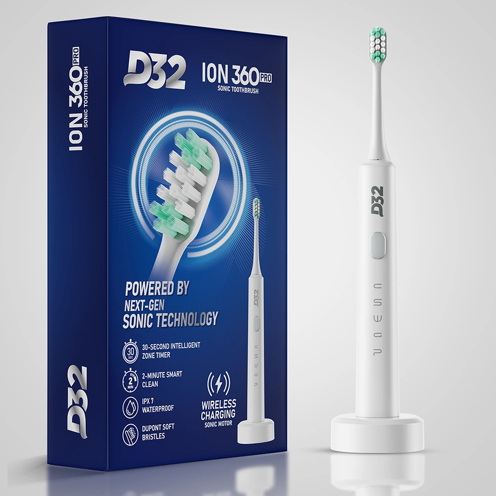 Explore the world of advanced oral hygiene with the D32 ION 360 PRO Sonic Toothbrush, combining smart features with exceptional performance. Engineered for powerful plaque removal and gentle gum care, it delivers a brighter, healthier smile with every use.