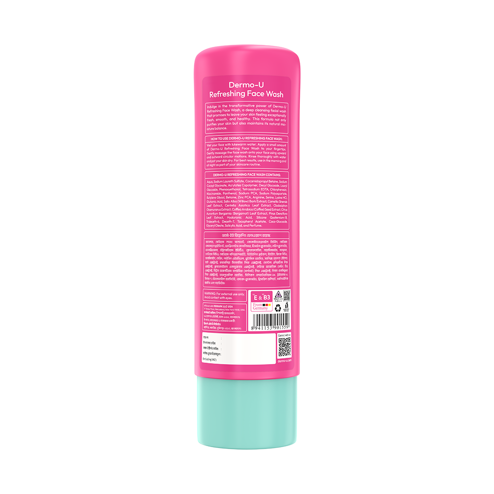 Indulge in the transformative power of Dermo-U Refreshing Face Wash, a deep cleansing facial wash that promises to leave your skin feeling exceptionally fresh, smooth, and healthy. This formula not only purifies your skin but also maintains its natural moisture balance. Experience a thorough rinse that leaves no lingering residue, offering a refreshing addition to your daily skincare routine. With Dermo-U Refreshing Face Wash, embrace a revitalized, invigorated, and self-assured version of yourself.
