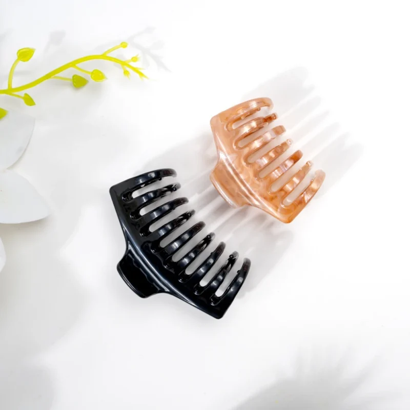 Lock in your look with the secure Teeth Jaw Clip. The interlocking teeth provide extra security, ensuring your hairstyle stays put from morning to night. Whether you’re at work or on the go, this clip has you covered for all-day wear. This two piece combo features a 7cm and 9cm teeth jaw clip in the colors Beige Marble and Black