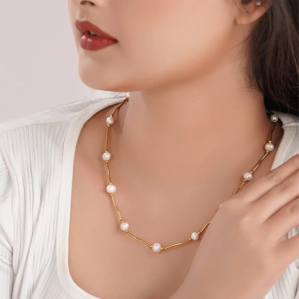 Glorin Chain Pearlo blends fine golden links with soft pearl accents, creating a graceful piece that balances modern and classic.