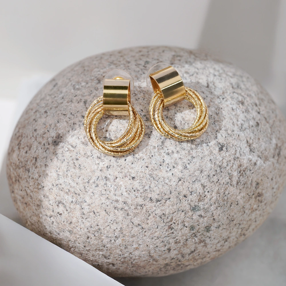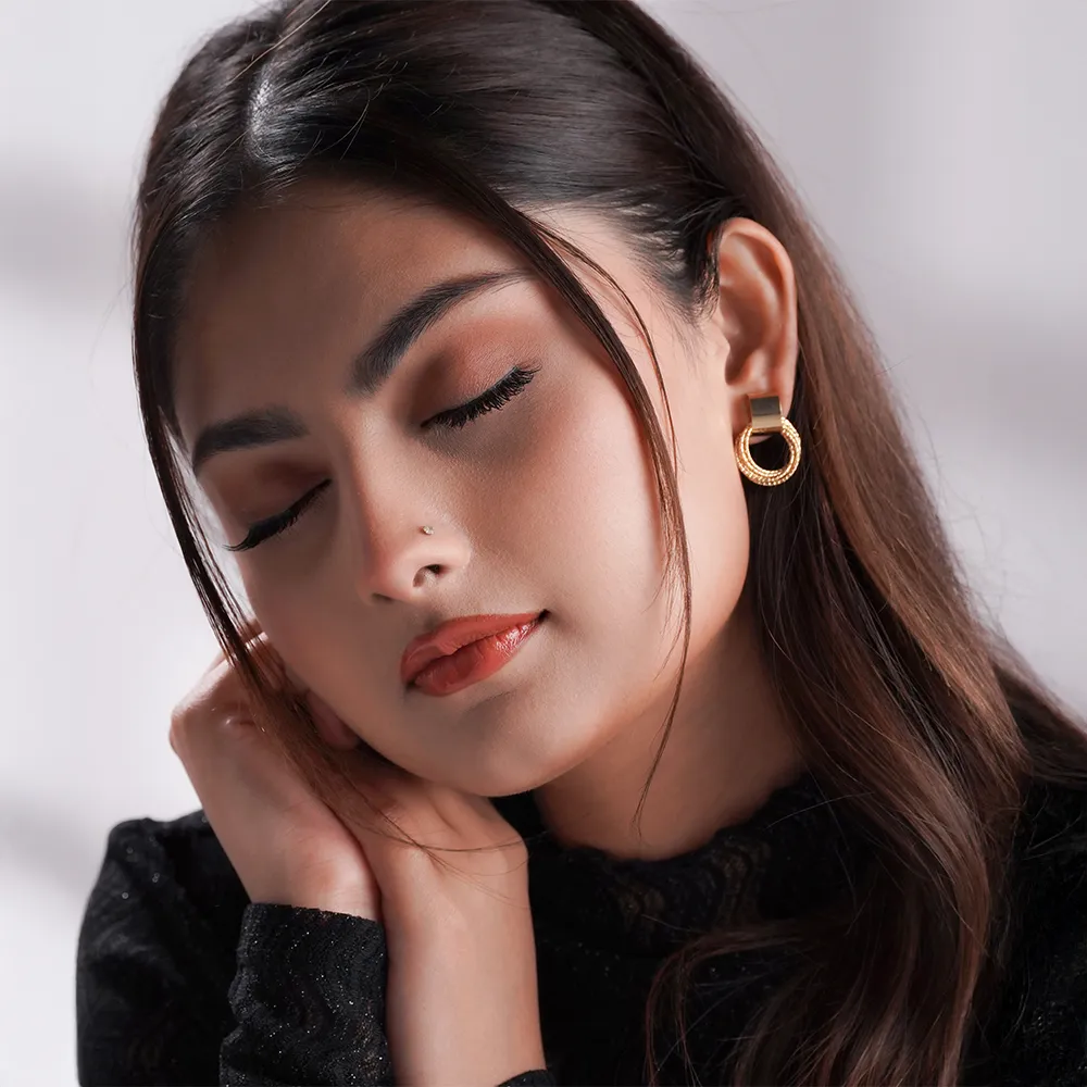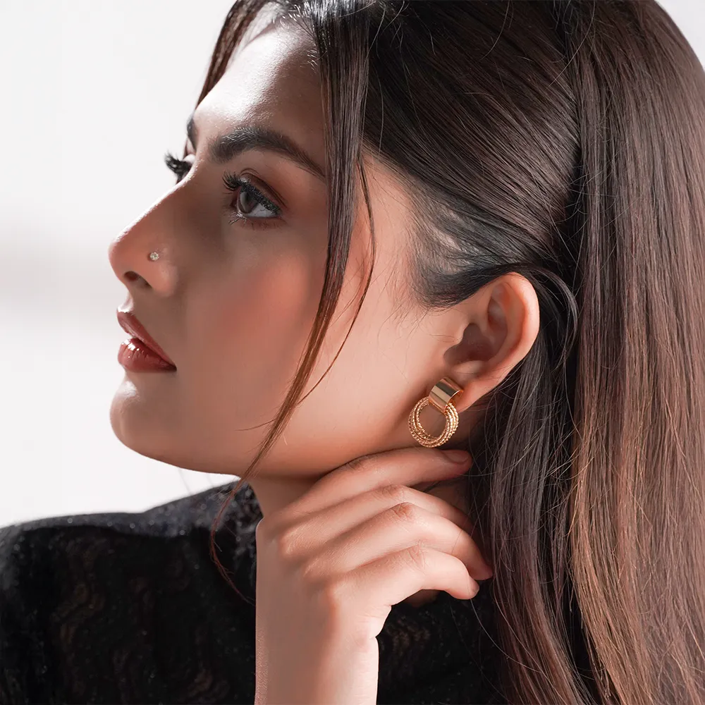 Glorin Earring Lustra Ring shines with golden spirals that reflect the light from every angle, adding subtle radiance to any look.