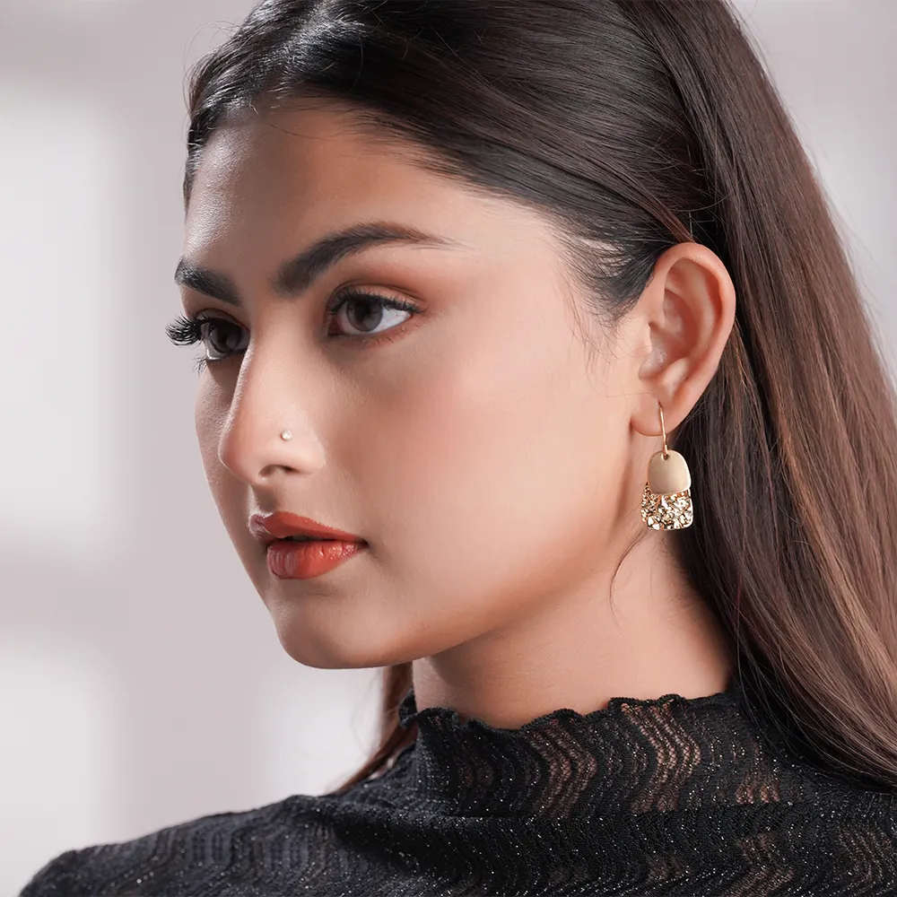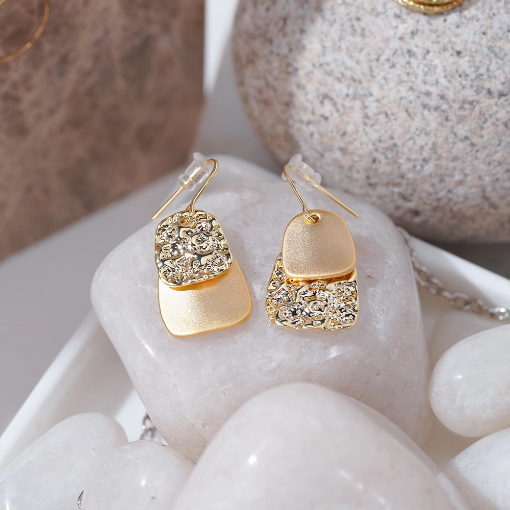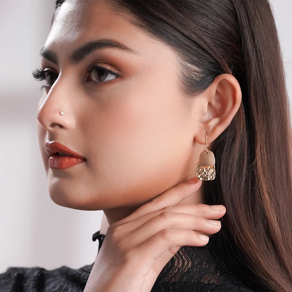 Glorin Earring Solene contrasts smooth polish with textured shine, bringing together two gold elements in a refined balance.