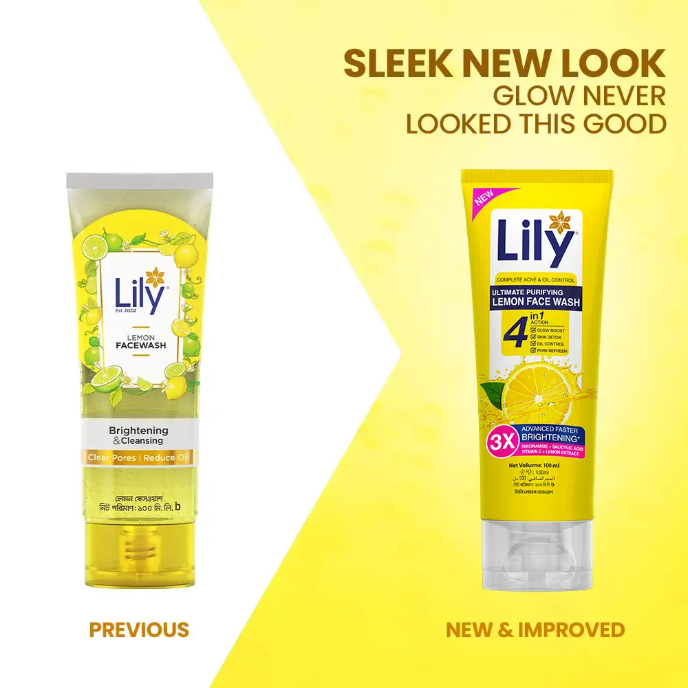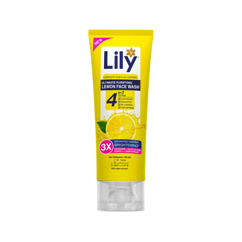 Lily Lemon Face Wash, enriched with Lemon Extract, helps reduce dark spots and brighten the skin with a gentle, soap-free formula. It purifies deeply to leave your skin feeling fresh, clear, and spotless. Powered by Salicylic Acid and Niacinamide, it supports clearer skin, controls excess oil, and delivers 2X Faster Brightening for a visibly radiant complexion.