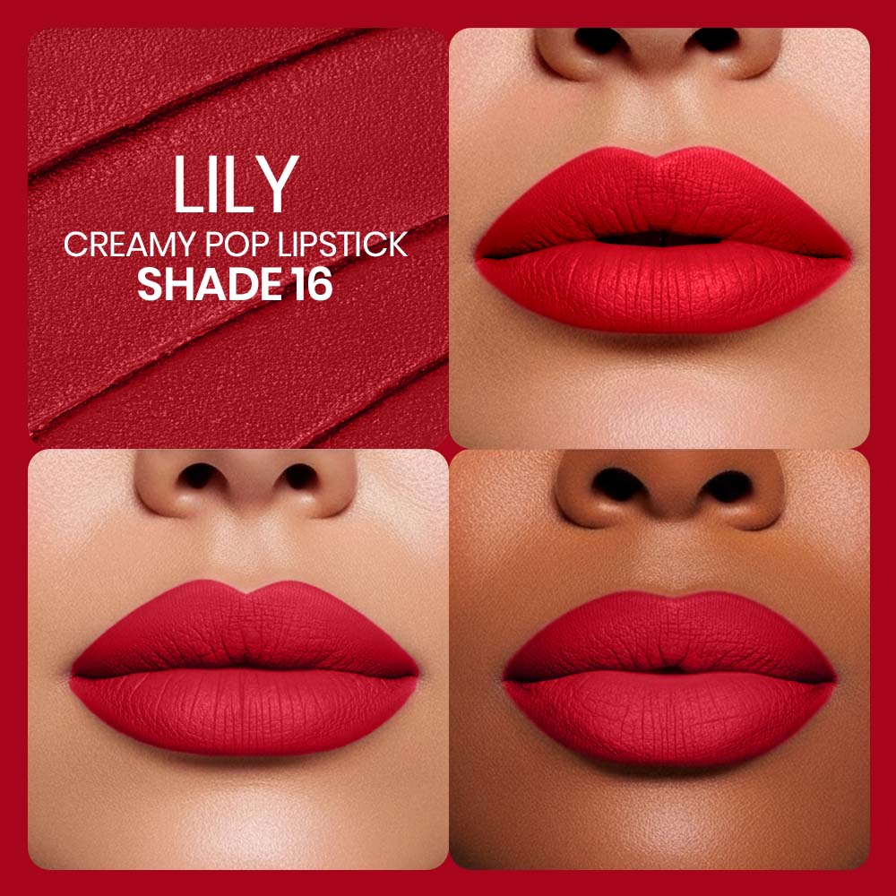 | Vitamin E & Intense Moisture: In addition to adorning your lips with vivid shades, Lily Creamy Pop Lipstick nurtures and deeply hydrates your lips, ensuring they maintain their smooth, velvety charm all day long. |
