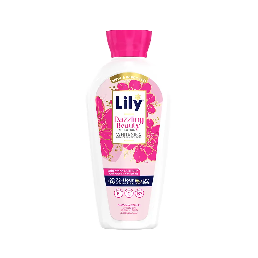 Lily Dazzling Beauty Whitening Skin Lotion is your skin’s essential ally for a luminous, even-toned complexion. Its lightweight, non-greasy formula absorbs quickly, delivering deep nourishment, enhancing brightness, locking in moisture, and protecting against sun damage.