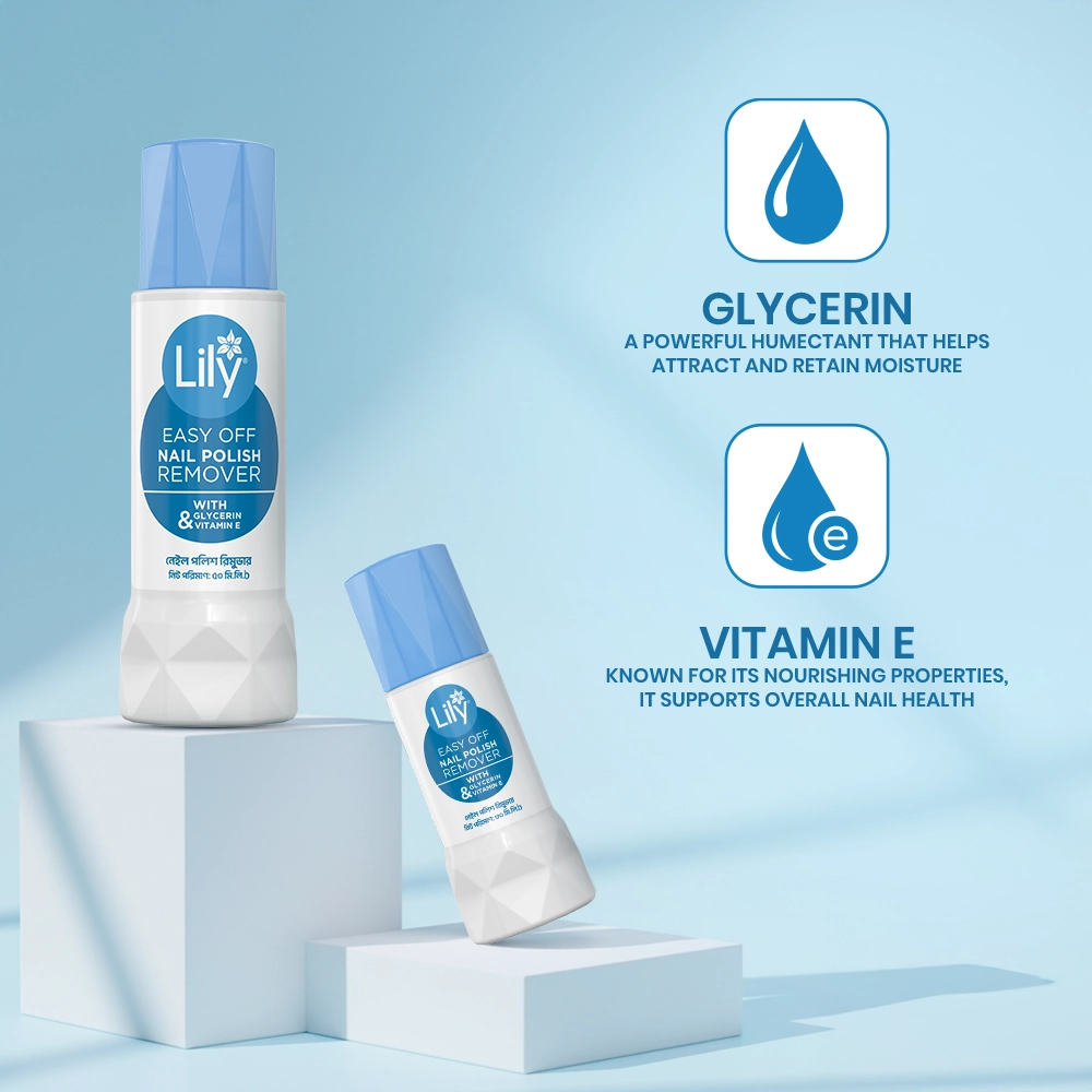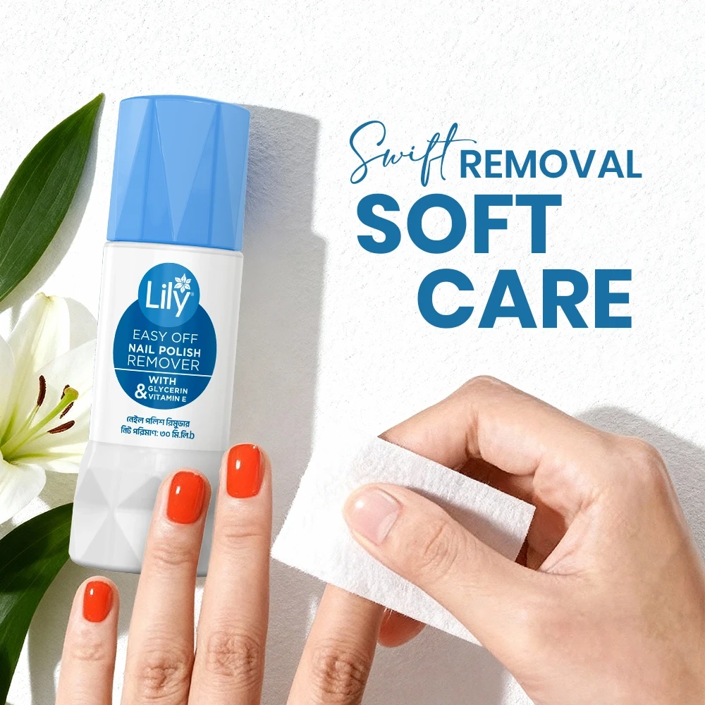 | Lily Easy-Off Nail Polish Remover offers a powerful solution for effortlessly removing your nail polish. Expertly formulated for quick and effective removal, it easily dissolves even the most stubborn formulas, including glitter and gel polishes, ensuring a smooth and efficient nail care experience. |