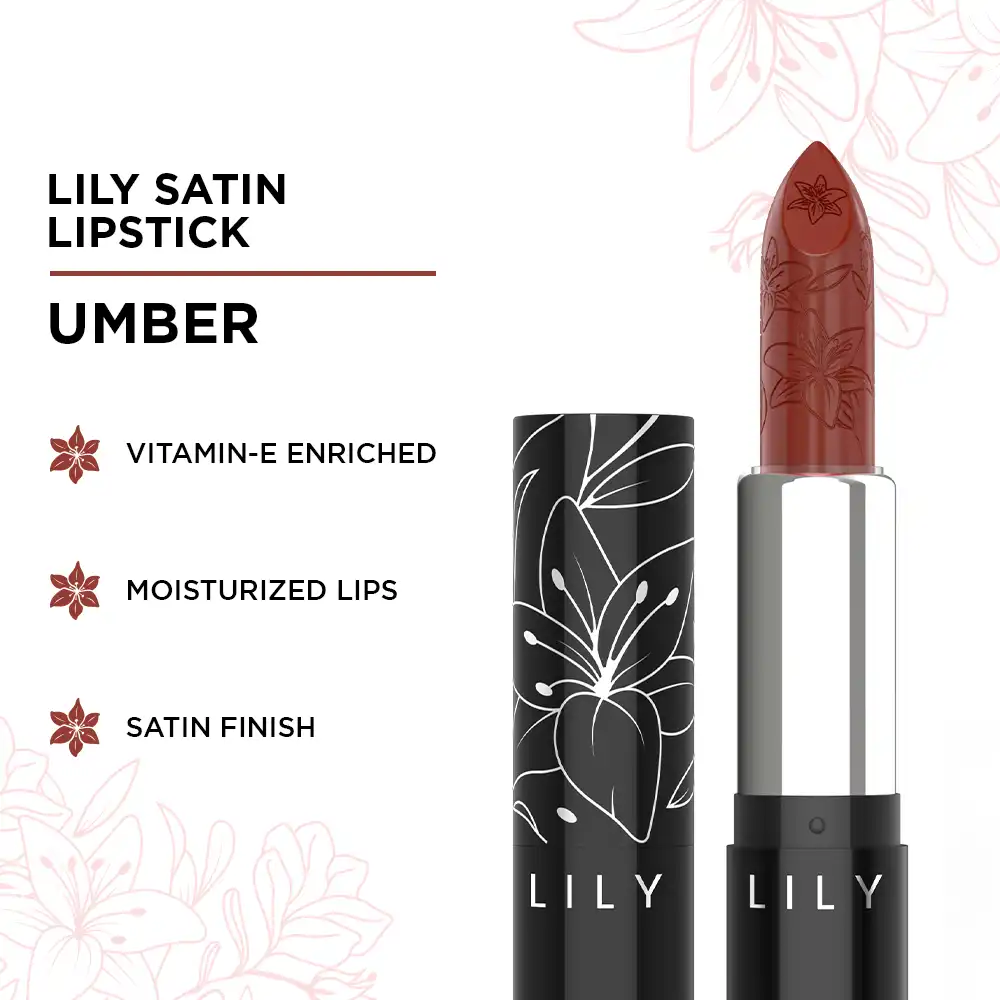 Vitamin E: In addition to adorning your lips with distinctive shades, Lily Satin Lipstick nurtures and hydrates your lips, ensuring they maintain their graceful charm.