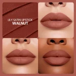 Lily Satin Lipstick empowers your pout with vibrant color, long-lasting wear, and nourishing moisture. This lipstick features a buildable, smudge-proof formula for a natural finish that elevates your confidence. Feel assured and let your lips exude grace with a burst of nurturing moisture that lasts all day!