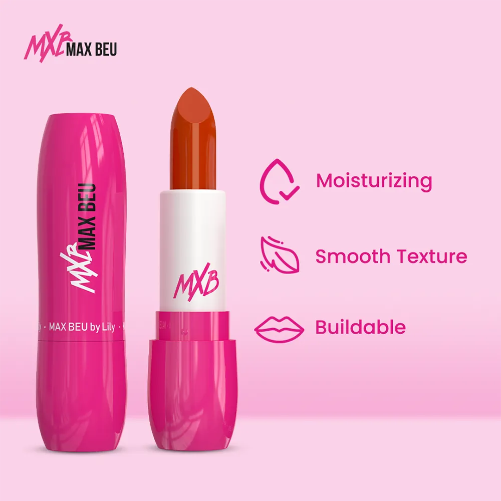 Max Beu Silk Finish Lipstick enhances your lips with vibrant color and smooth, comfortable wear, embodying luxury without compromise. This lipstick features a buildable formula enriched with Almond Oil to nourish and hydrate, delivering a silky texture that glides on effortlessly. Enjoy soft, moisturized lips with every application while maintaining vivid, long-lasting color.