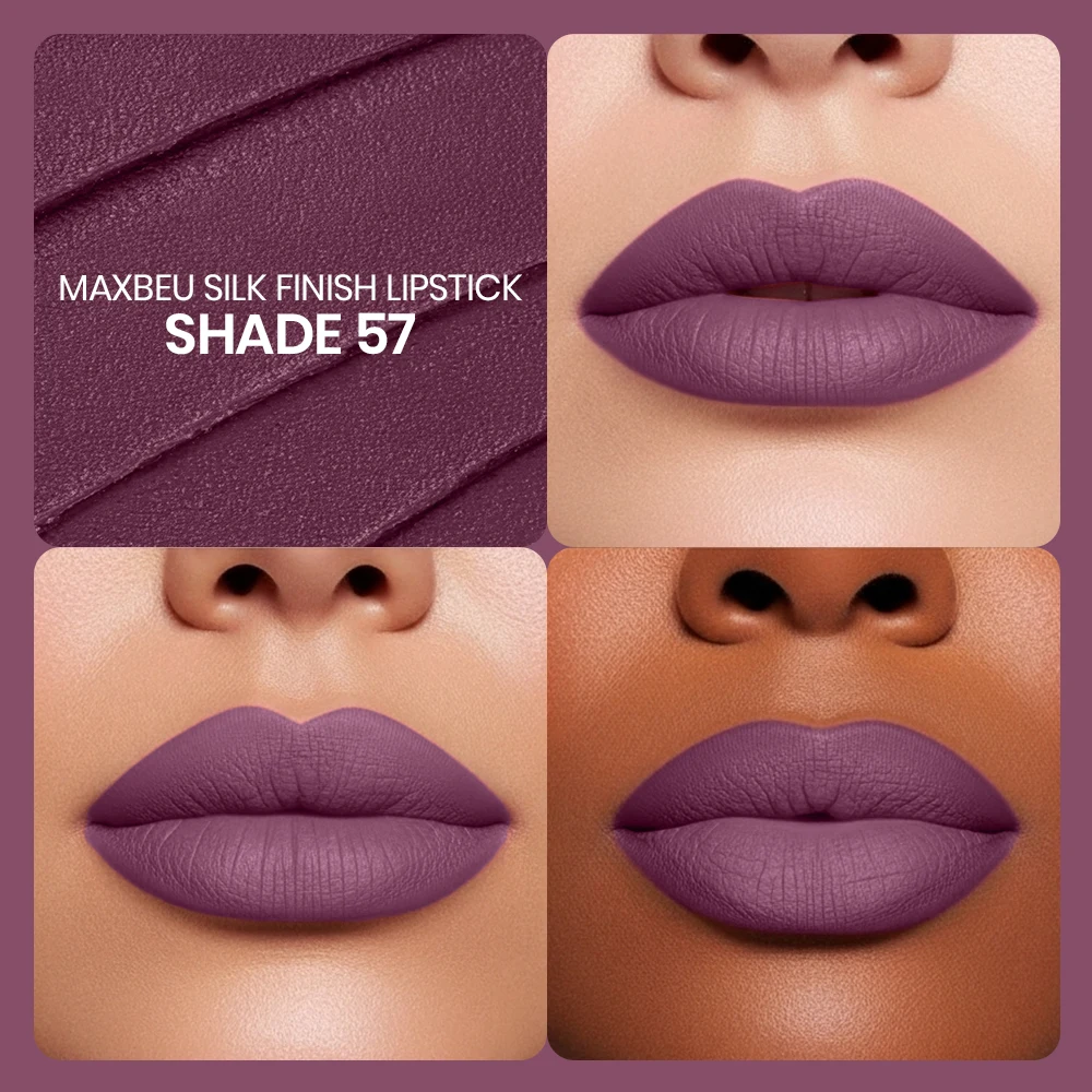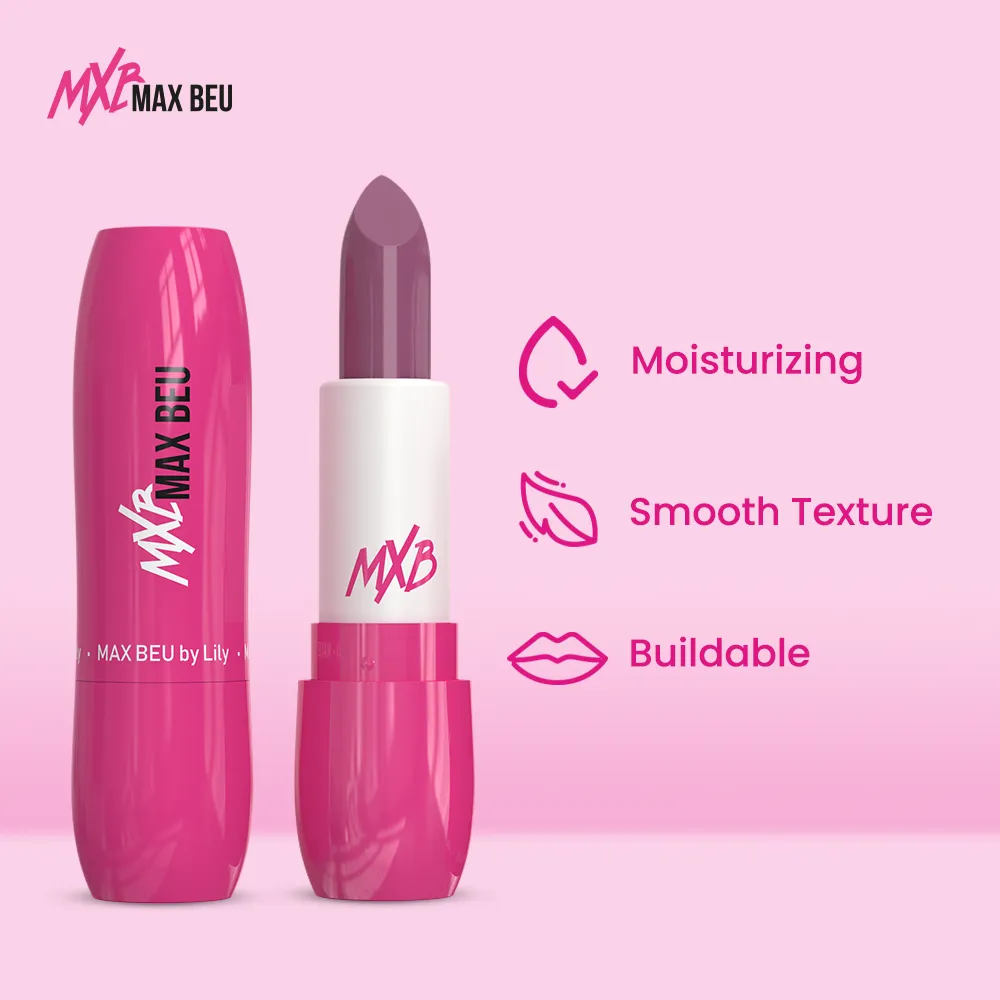 Max Beu Silk Finish Lipstick enhances your lips with vibrant color and smooth, comfortable wear, embodying luxury without compromise. This lipstick features a buildable formula enriched with Almond Oil to nourish and hydrate, delivering a silky texture that glides on effortlessly. Enjoy soft, moisturized lips with every application while maintaining vivid, long-lasting color.