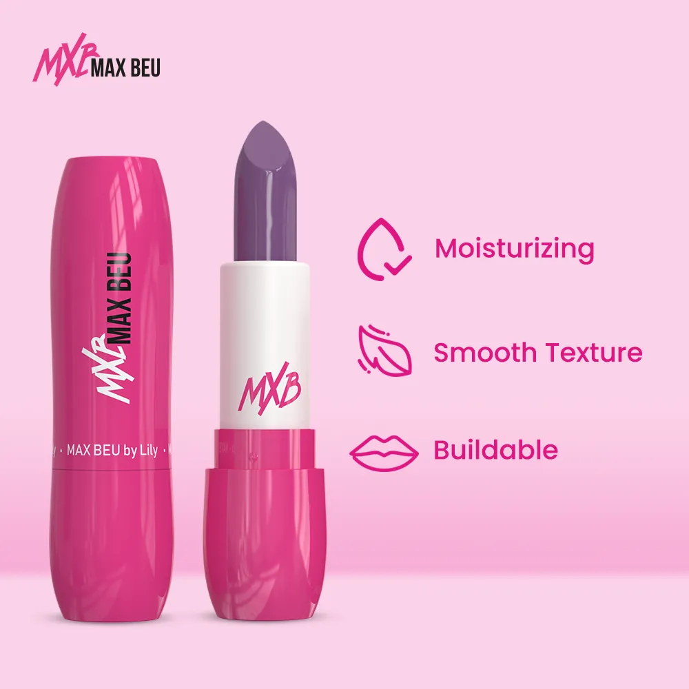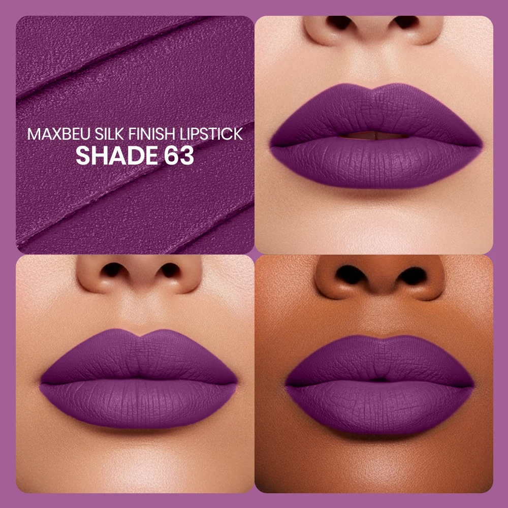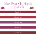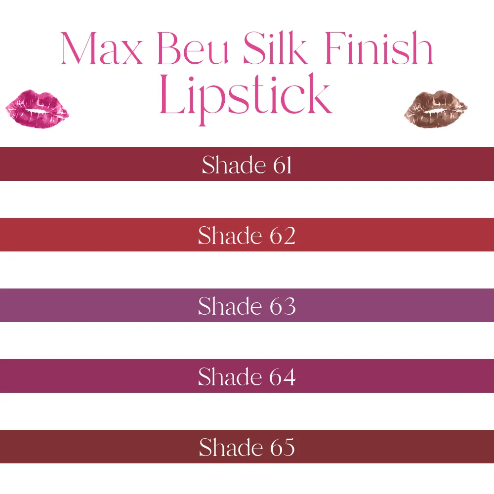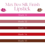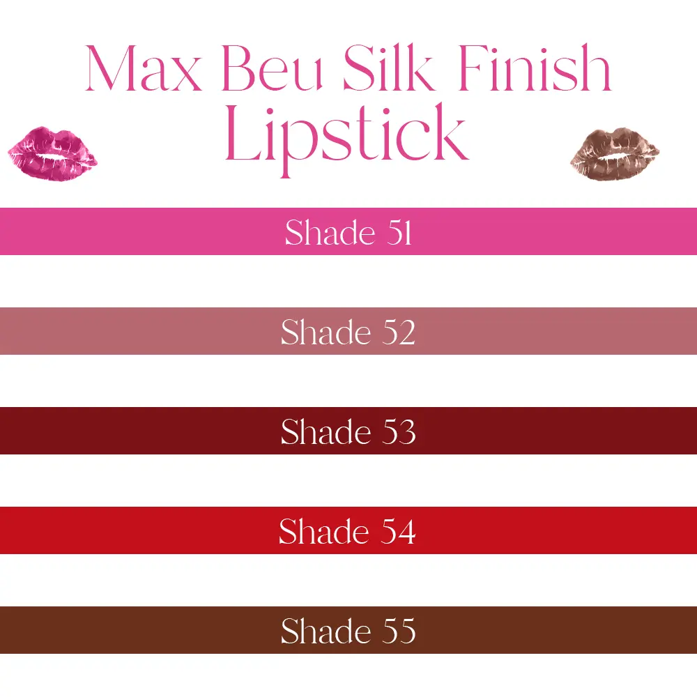 Max Beu Silk Finish Lipstick enhances your lips with vibrant color and smooth, comfortable wear, embodying luxury without compromise. This lipstick features a buildable formula enriched with Almond Oil to nourish and hydrate, delivering a silky texture that glides on effortlessly. Enjoy soft, moisturized lips with every application while maintaining vivid, long-lasting color.