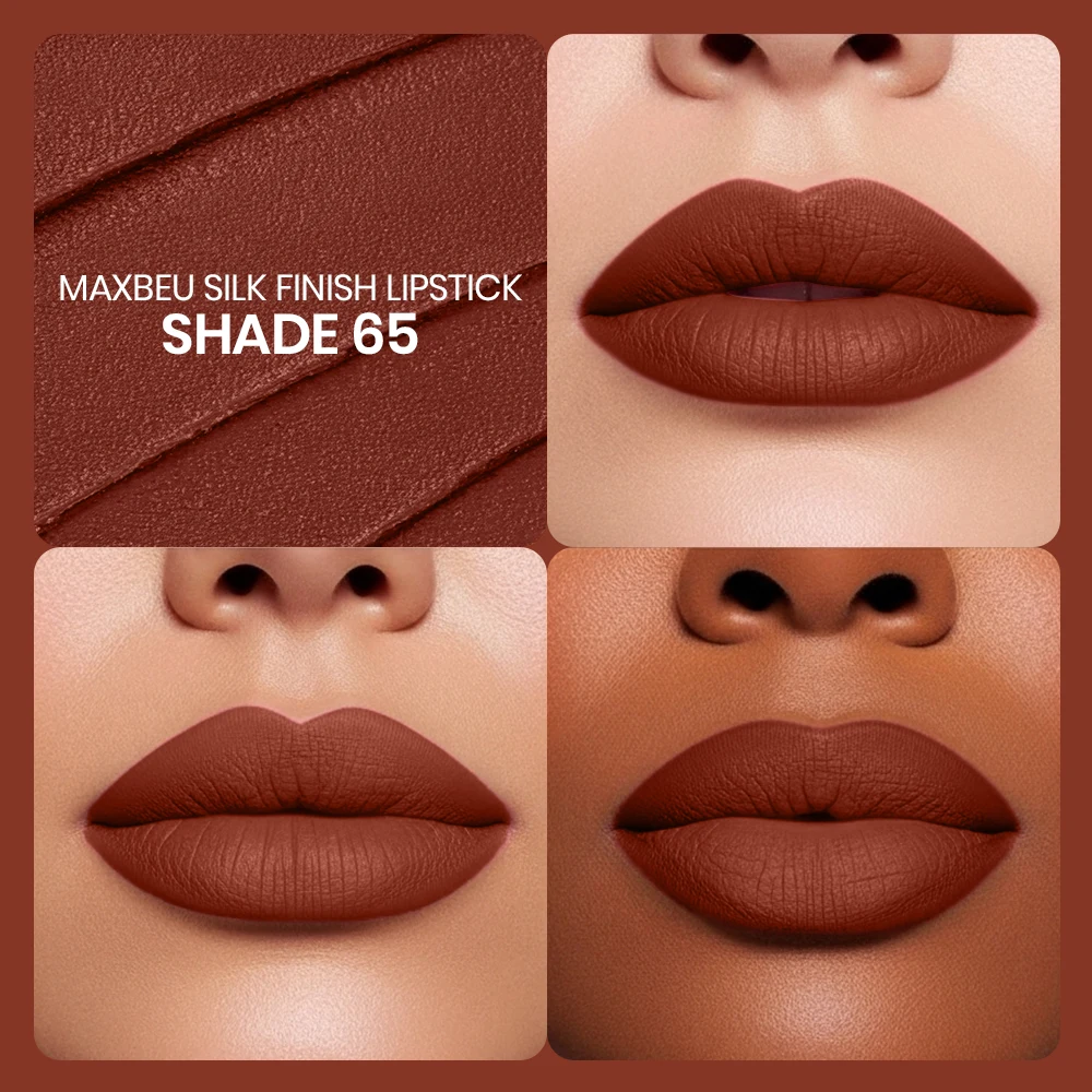 Max Beu Silk Finish Lipstick enhances your lips with vibrant color and smooth, comfortable wear, embodying luxury without compromise. This lipstick features a buildable formula enriched with Almond Oil to nourish and hydrate, delivering a silky texture that glides on effortlessly. Enjoy soft, moisturized lips with every application while maintaining vivid, long-lasting color.