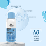NIOR Insta-Fresh Micellar Water effortlessly removes makeup from face, eyes, and lips, while soothing and hydrating the skin with a gentle formula enriched with cucumber, suitable for all skin types.