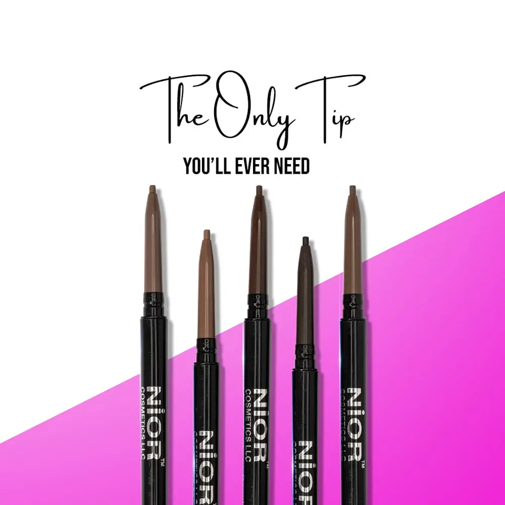 NIOR On Point Micro Eyebrow Pencil is your go-to for precision and accuracy. The super thin retractable tip creates hair-like strokes, while the attached spoolie brush blends and shapes for a naturally defined finish. Perfect for achieving long-lasting, flawless brows with ease.