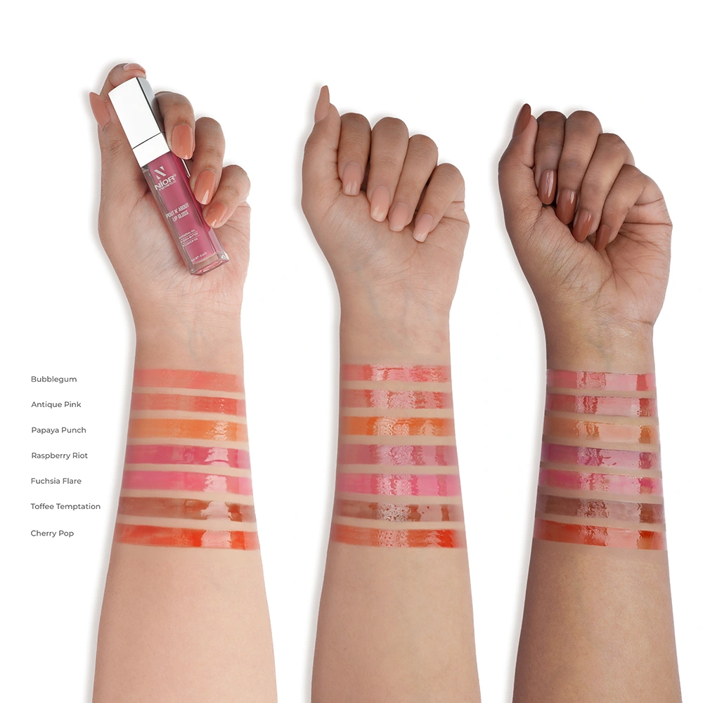 Hydration Boost: Mineral oil shields lips from dehydration, ensuring they stay moisturized all day long. * Line and fill your lips with your favorite lip liner. * Apply NIOR Plump n Pout Lip Gloss over the liner for a plump, glossy finish with a cooling sensation.Description