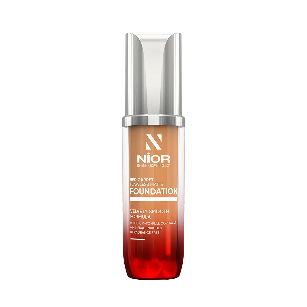 Channel red carpet elegance with Nior Red Carpet Flawless Matte Foundation. This miracle formula provides flawless medium to full coverage with a nourishing mineral-enriched blend, crafted without talc, parabens, or fragrance. Stay picture-perfect all day with its waterproof and transfer-resistant formula, and step into the limelight, shining like a star.