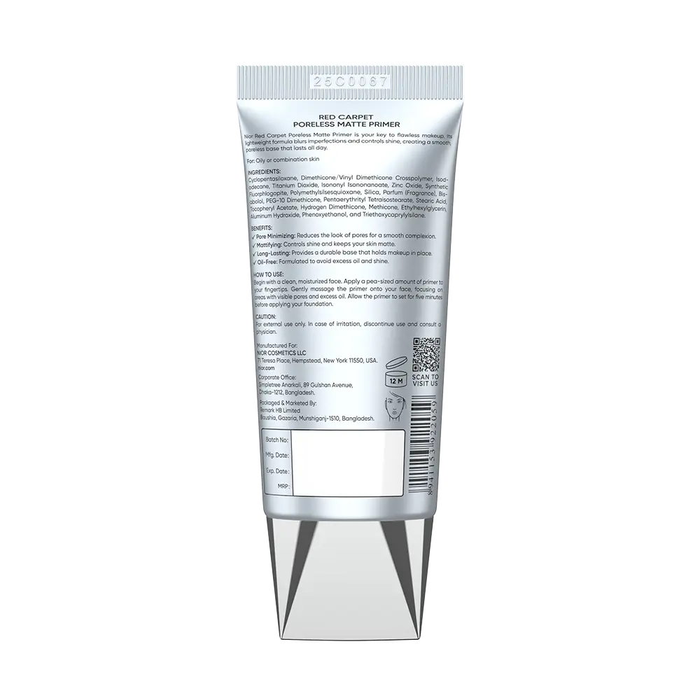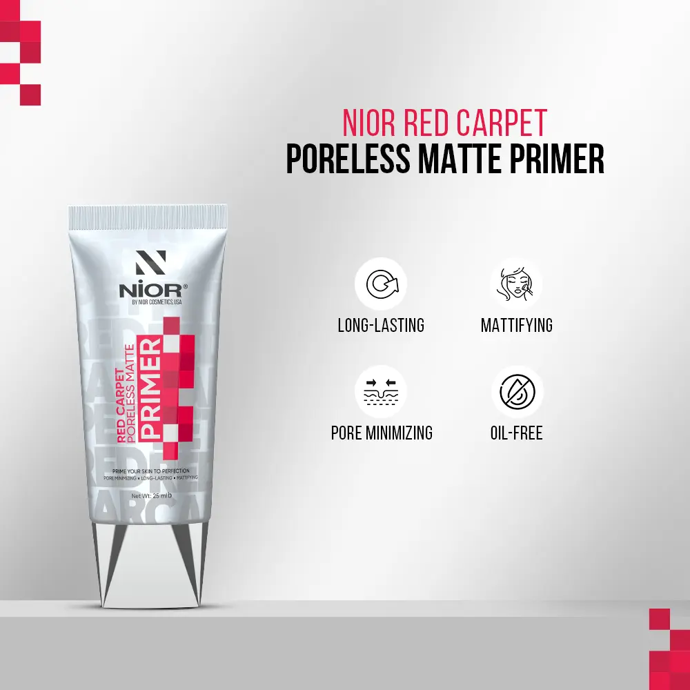 | Nior Red Carpet Poreless Matte Primer is your key to flawless makeup. Its lightweight formula blurs imperfections and controls shine, creating a smooth, poreless base that lasts all day. |