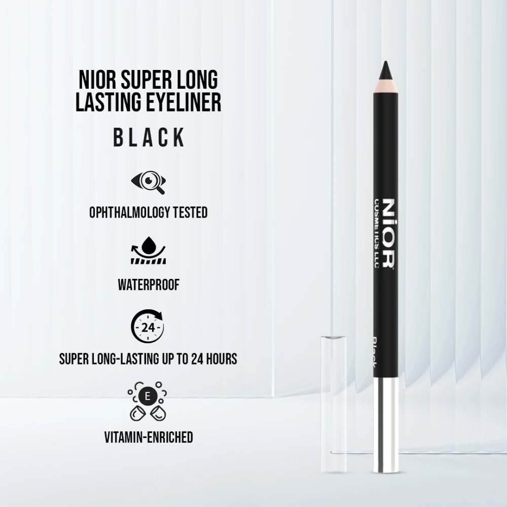 NIOR Super Long Lasting Eyeliner features a smudge-proof, long-wearing formula that sweeps gorgeously along the contours of your eye and sets in a blink. With transfer resistance and rich pigmentation, it’s a must-have for your makeup collection, allowing for effortless creation of diverse eyeliner styles.