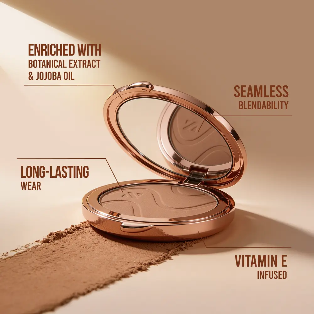 ● For Bronze: Dust lightly on areas where the sun naturally hits, such as cheeks, nose, and forehead, for a warm, natural glow