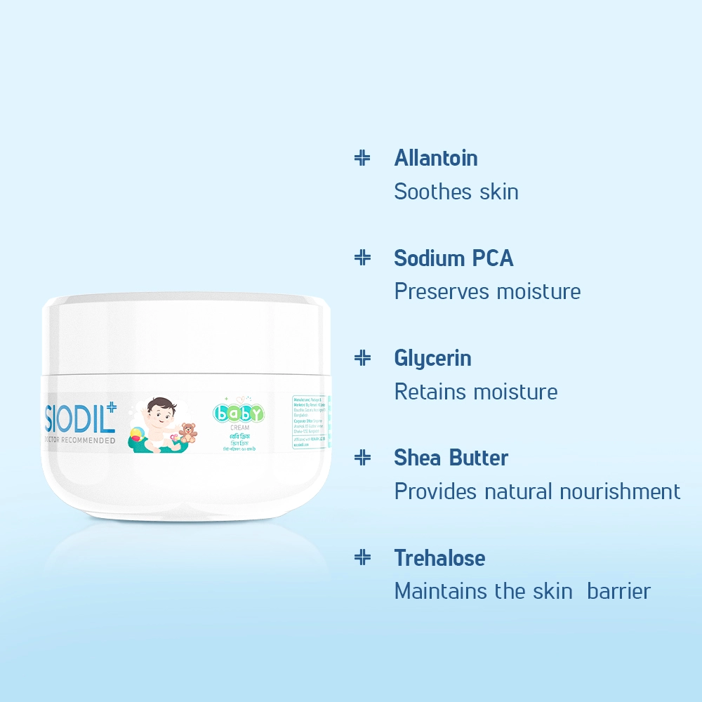 Siodil Baby cream is designed to offer optimal hydration and protection to keep your baby’s skin healthy and soft. With an advanced combination of Glycerine, Shea Butter, Sodium PCA, Trehalose, Allantoin, and Sodium Hyaluronate, this moisturizing cream helps preserve the natural balance of your baby’s skin while also keeping it smooth, flexible, and healthy.
