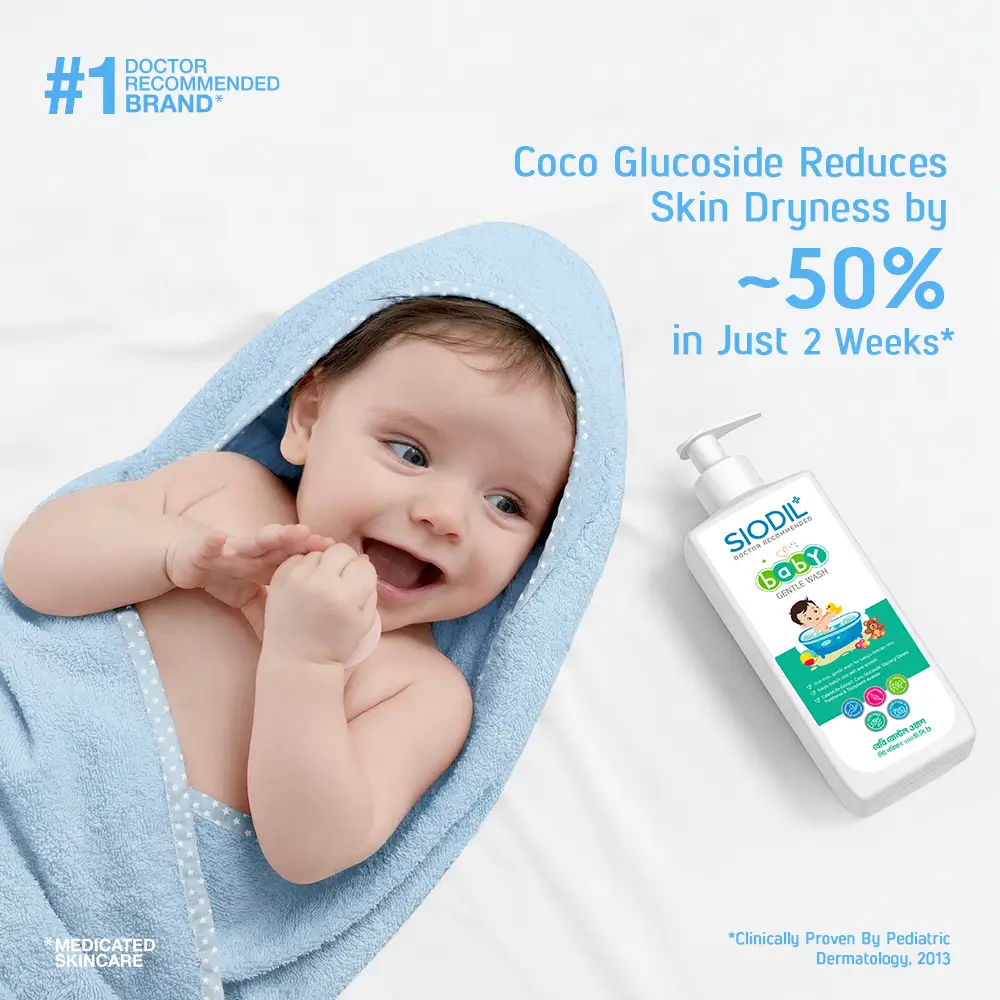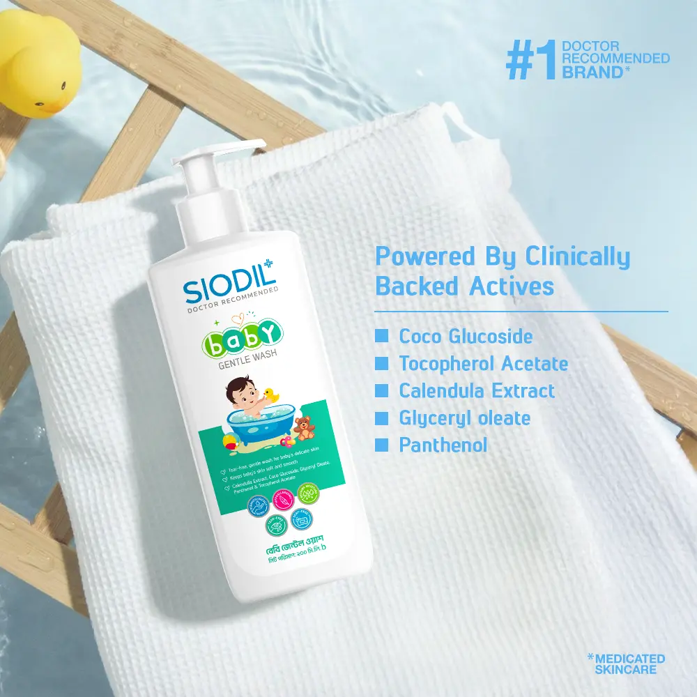 SIODIL Baby Gentle Wash is a soap-free, gentle cleanser that is formulated especially for delicate baby skin. It contains Calendula Flower Extract, Coco Glucoside, Glyceryl Oleate, Pantothenic Acid, and Tocopherol, which gently cleanse and nourish your baby’s skin, leaving it feeling soft and smooth.