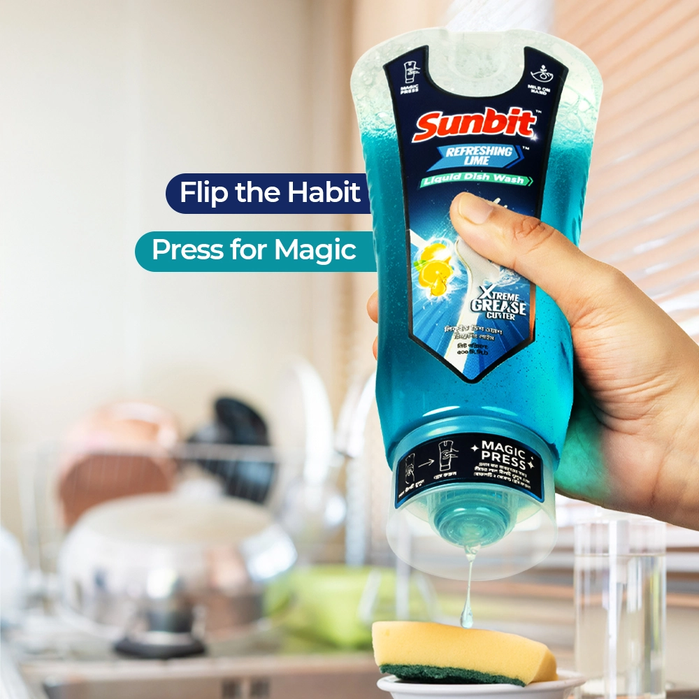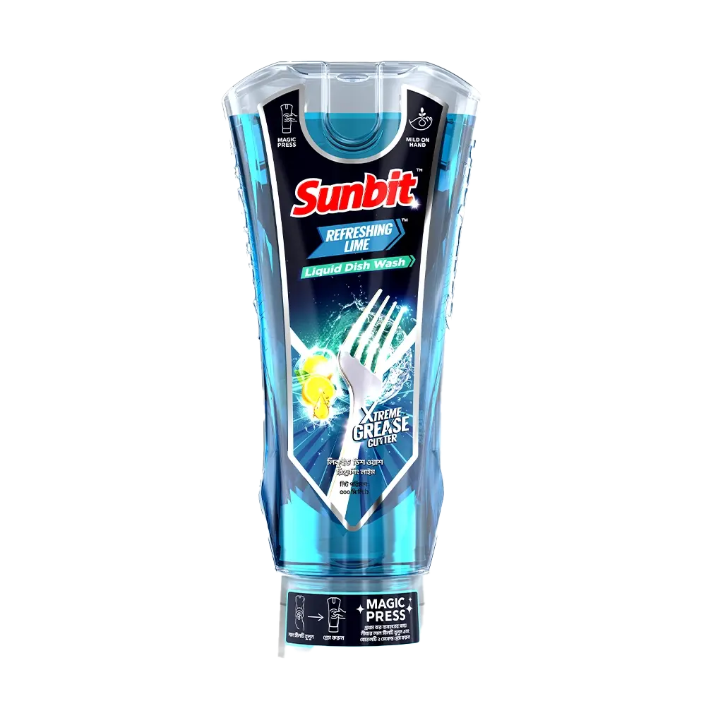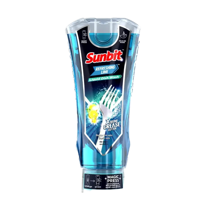 Sunbit Refreshing Lime Magic Press Liquid Dishwash will revolutionize the way you clean dishes. With innovative packaging and an advanced formulation, it effortlessly tackles stubborn grease, leaving your dishes sparkling with a diamond-like shine. Despite its gentle touch on your hands, Sunbit is a formidable adversary against tough grease.