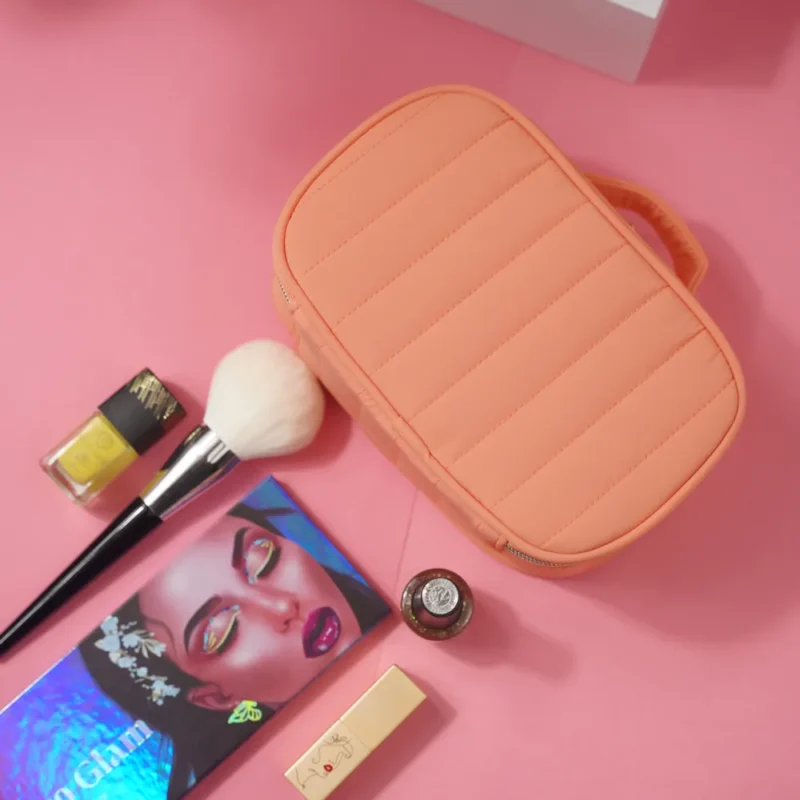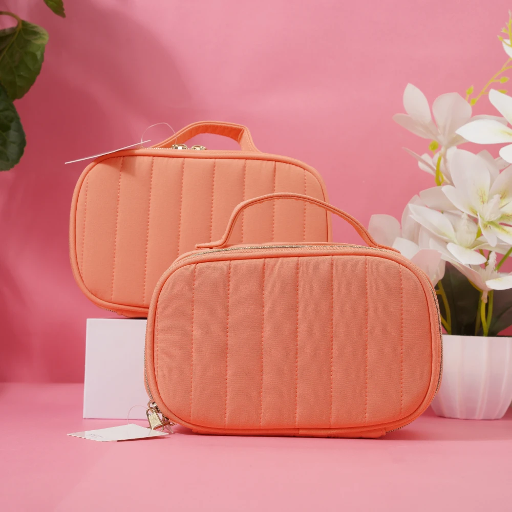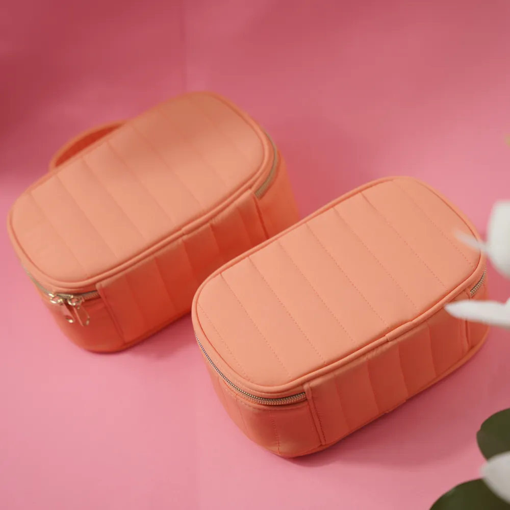 Discover the perfect blend of style and sophistication with this Quilted Nylon Train Case. Its chic quilted exterior and robust construction offer both elegance and durability. Ideal for traveling or home use, it provides ample storage with a well-organized layout for all your beauty essentials.