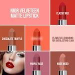 NIOR Velveteen Matte Lipstick seals your pout with a sumptuous touch of velvety perfection. Crafted for sophistication, our long-lasting formula delivers a seamless finish, rich in pigmentation, and flawlessly smudge-proof.